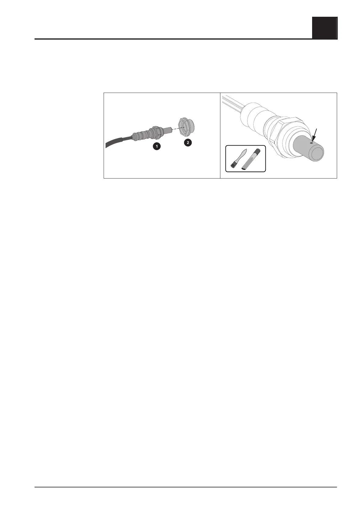 ❒ Carefully remove the Lambda probe (1) and plastic bushing (2)