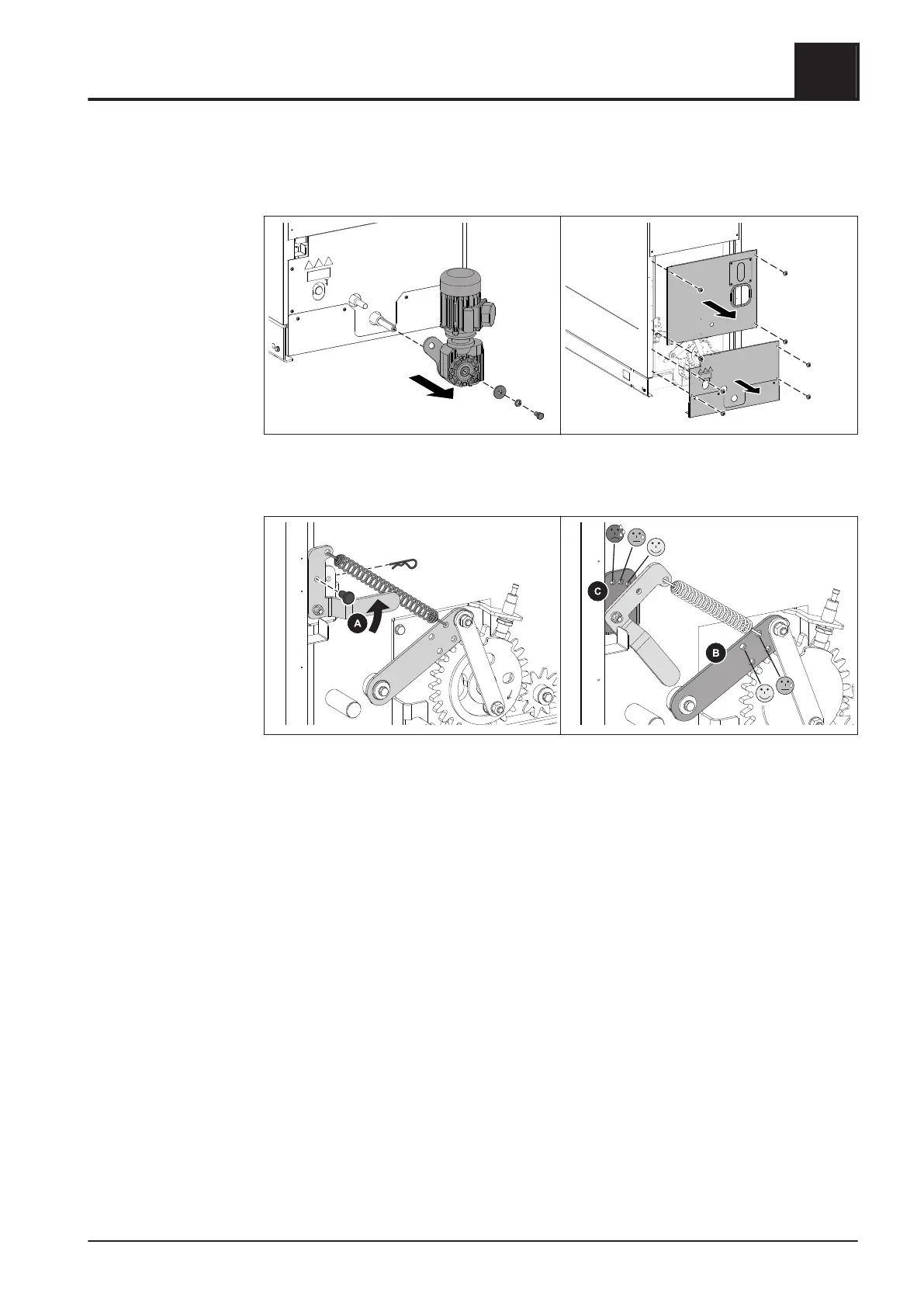 ❒ Hook the tension spring into the applicable hole on the carrier plate (B)