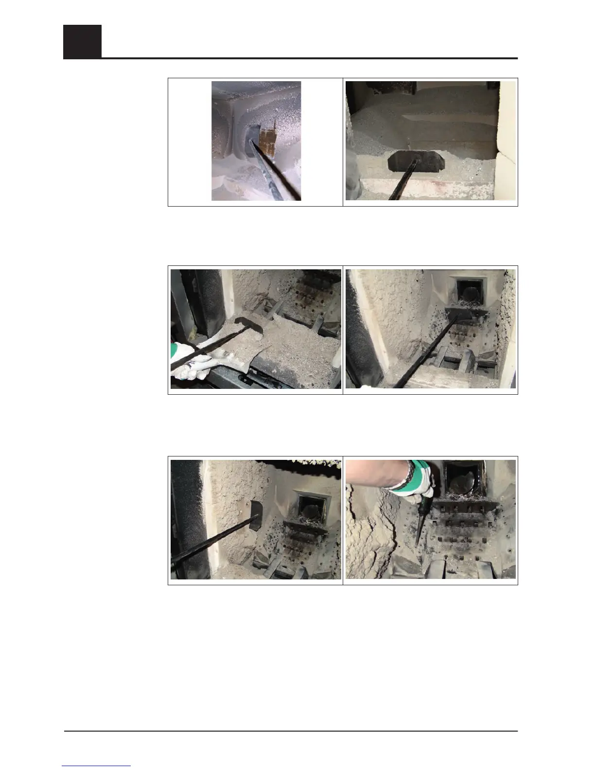 ❒ Clean the side walls of the combustion chamber with the furnace tool