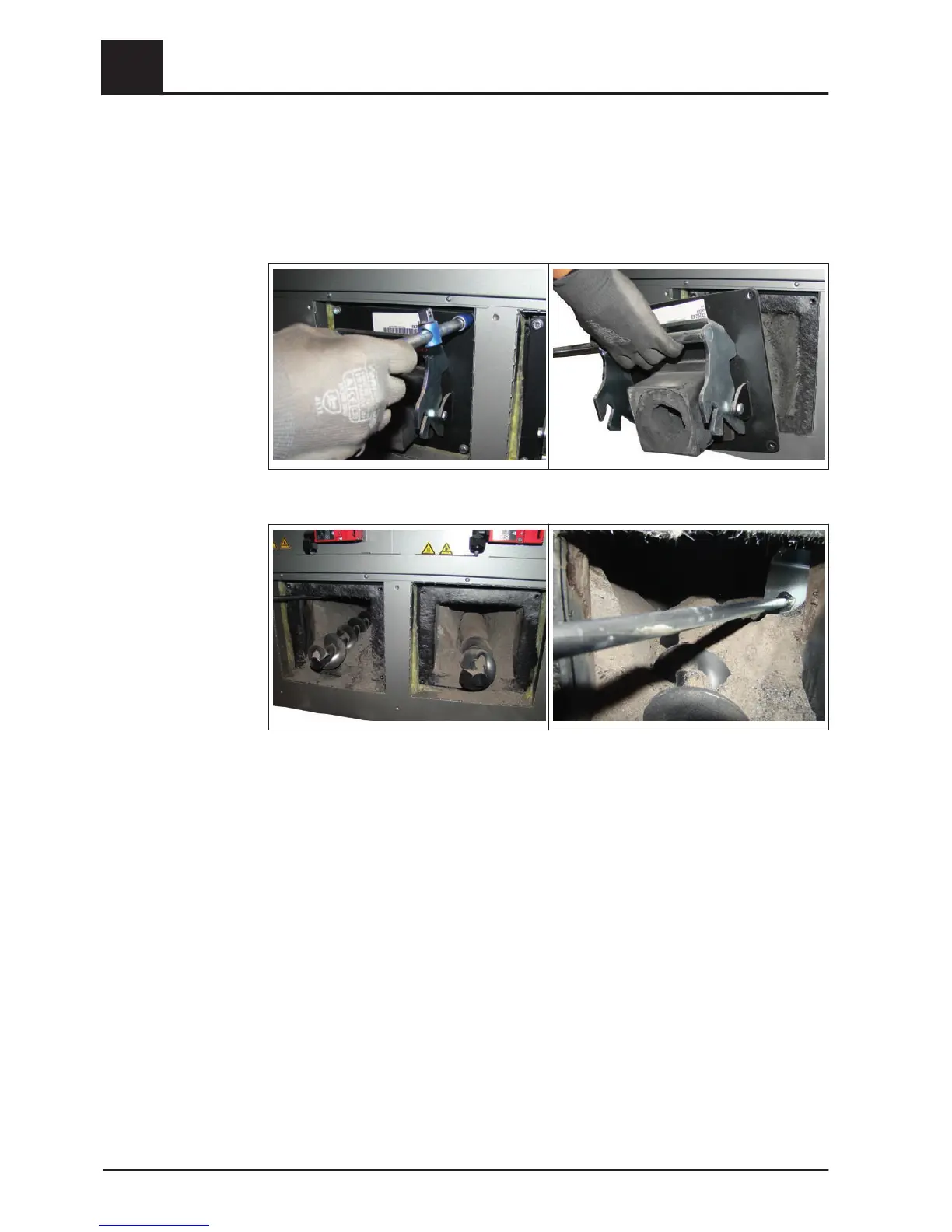 ❒ Remove dirt and deposits from the side walls and from the ash screws.