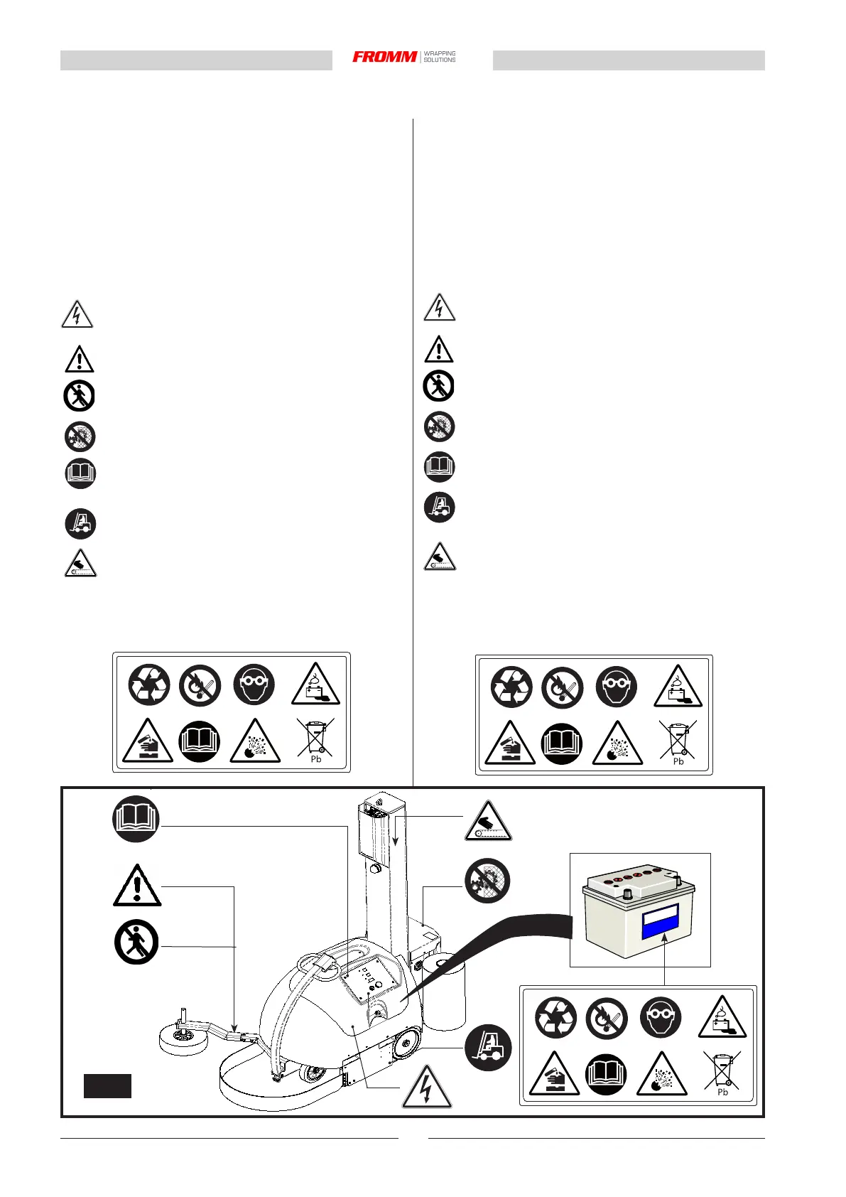 Targa di sicurezza riportata sulla batteria. La simbolo-