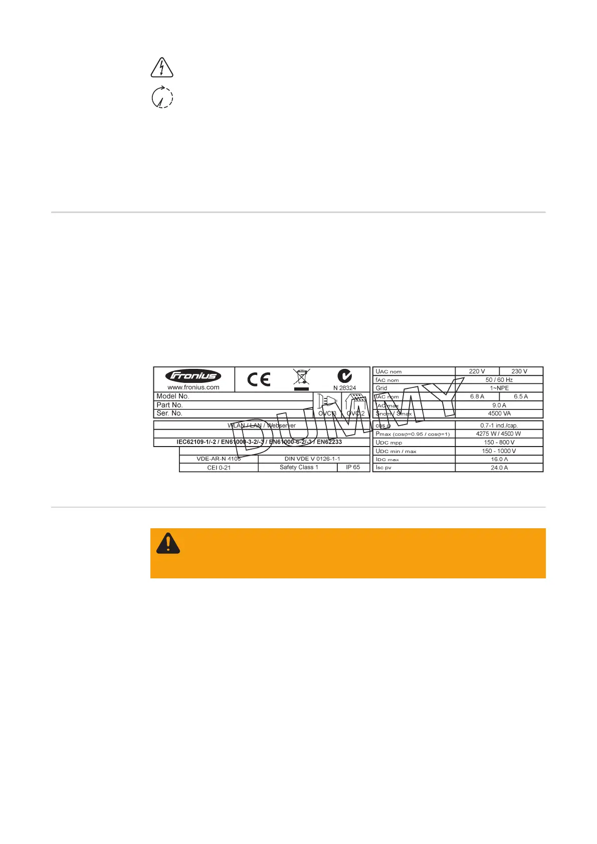 the inverter, even when the DC switch is switched off. Make sure that the DC side