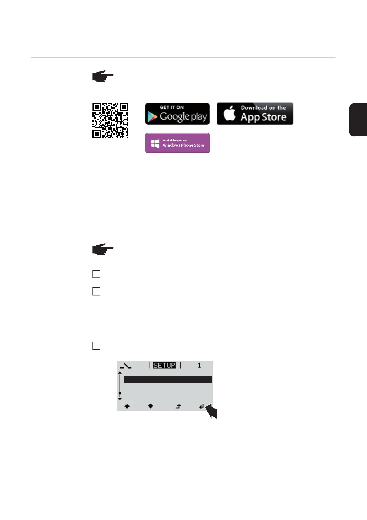 - Ativar o WIFI Access Point através do menu de setup do inversor