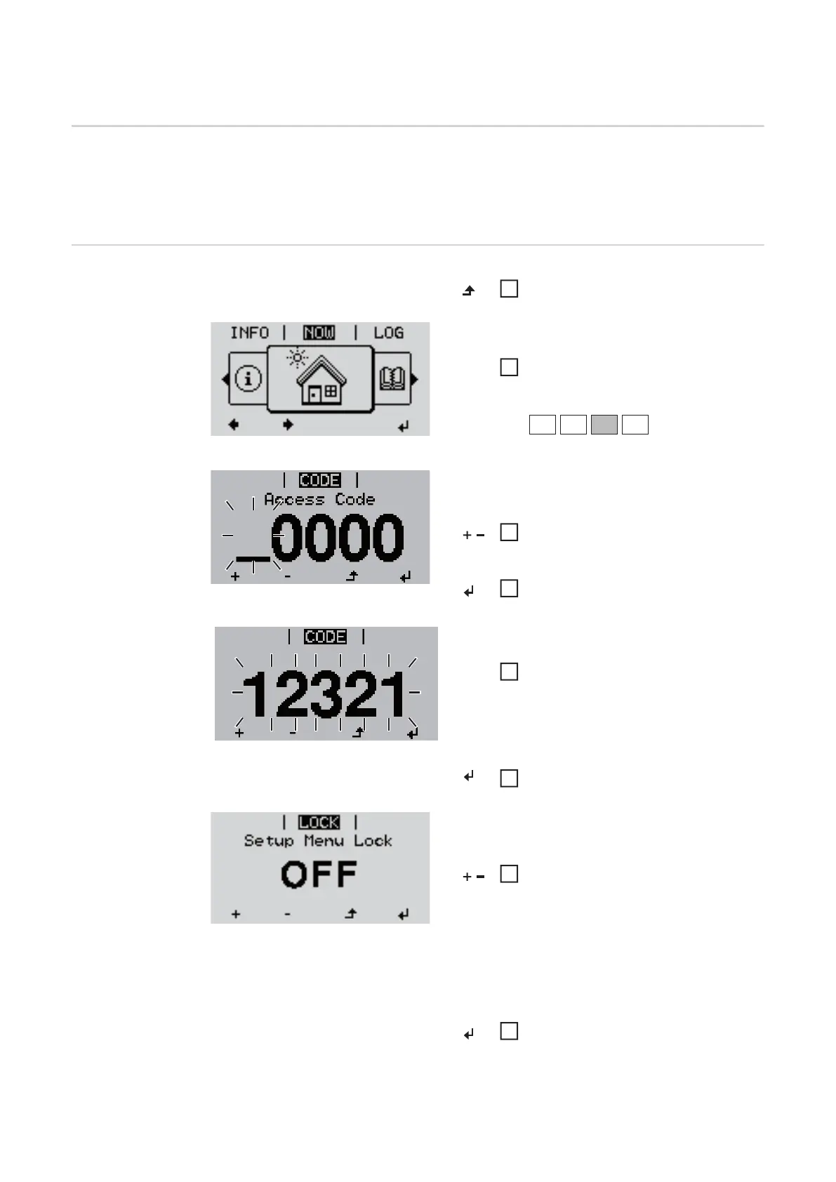 When the key lock is active, the Setup menu is not accessible, i.e. the setup data cannot