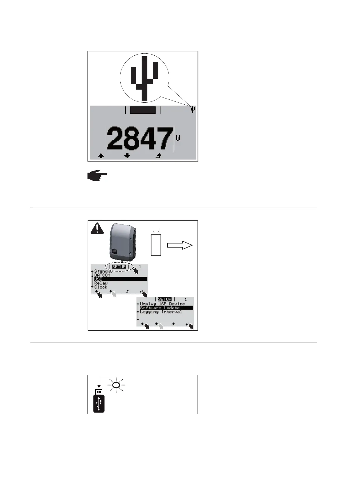 USB symbol on the inverter display, e.g. in display mode 'NOW':