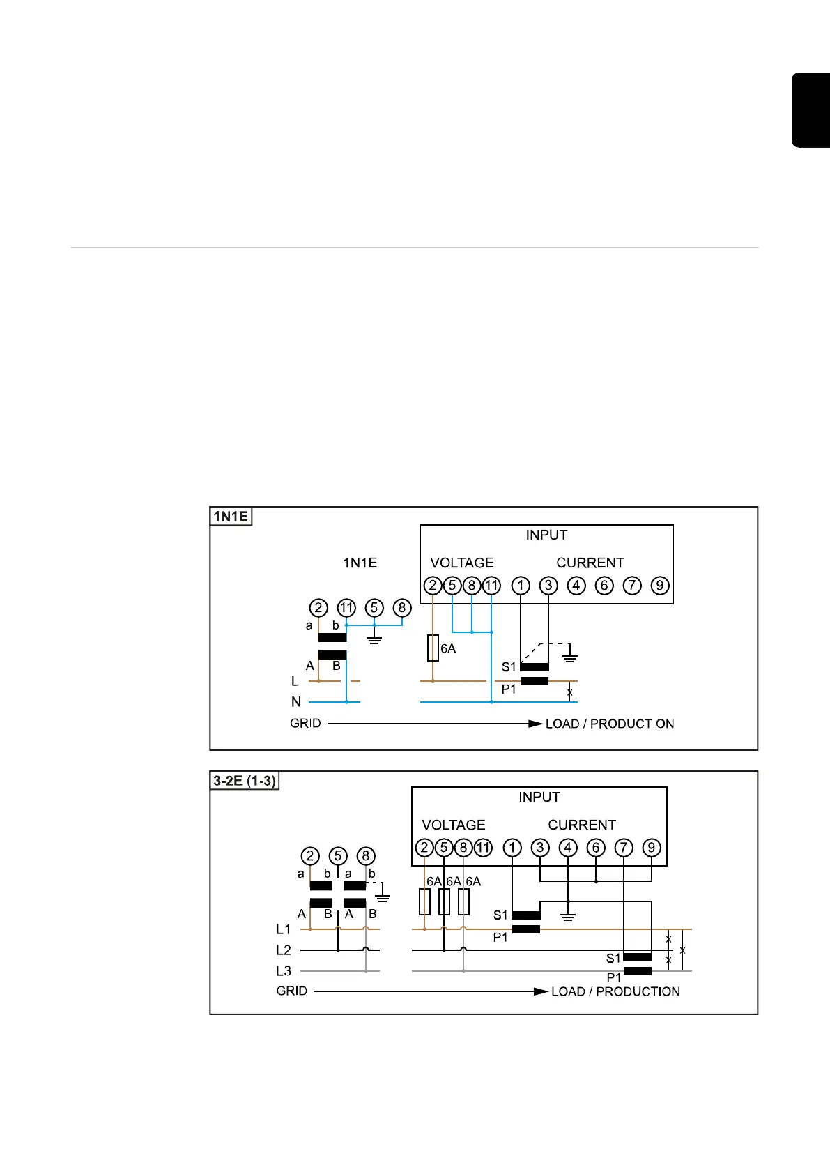 - To monitor more than one mains voltage, use connected automatic circuit breakers.