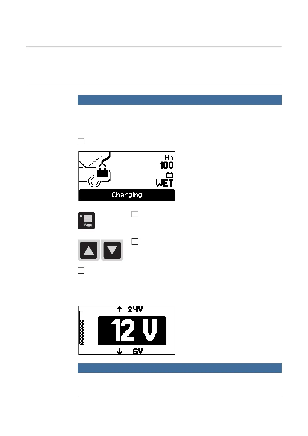 Use the Menu key to select the "Ah" or "Battery type" setting.