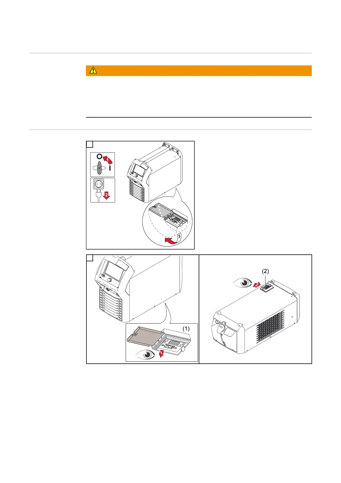 Ensure that the cooling unit connection (1) and the power source connection (2) are