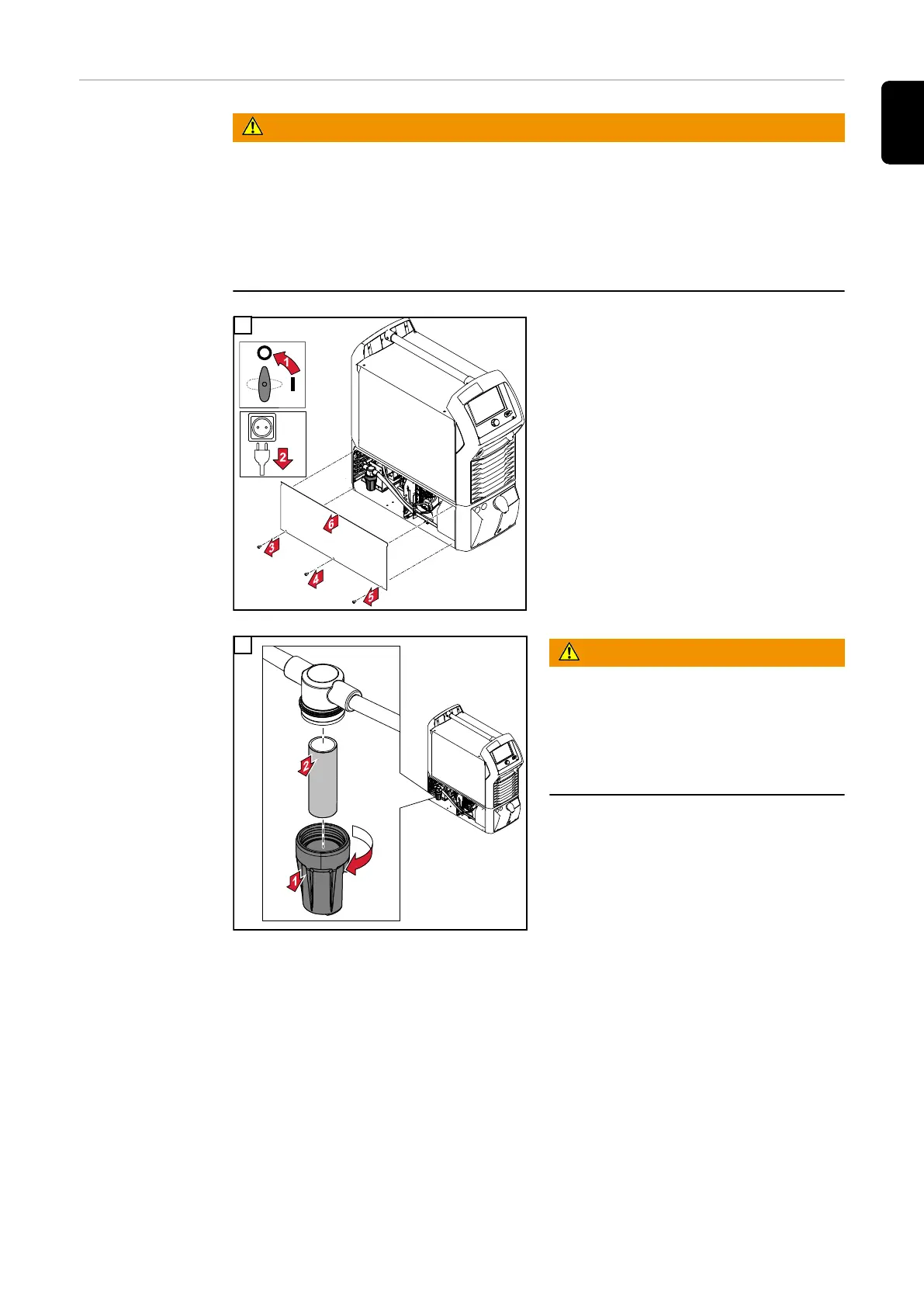 Danger from welding current and accidental ignition of an arc.