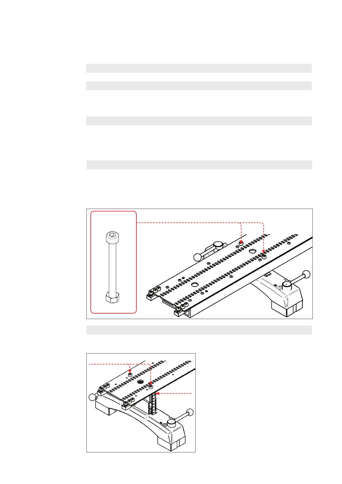 Install the bridge on the rail using the two M6x65 screws and counter them with the two