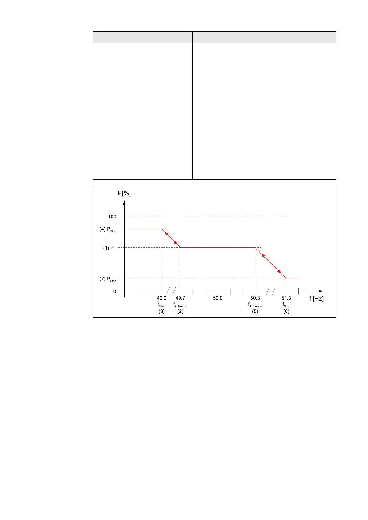 General power curve with overfrequency and underfrequency without hysteresis with stop frequency.