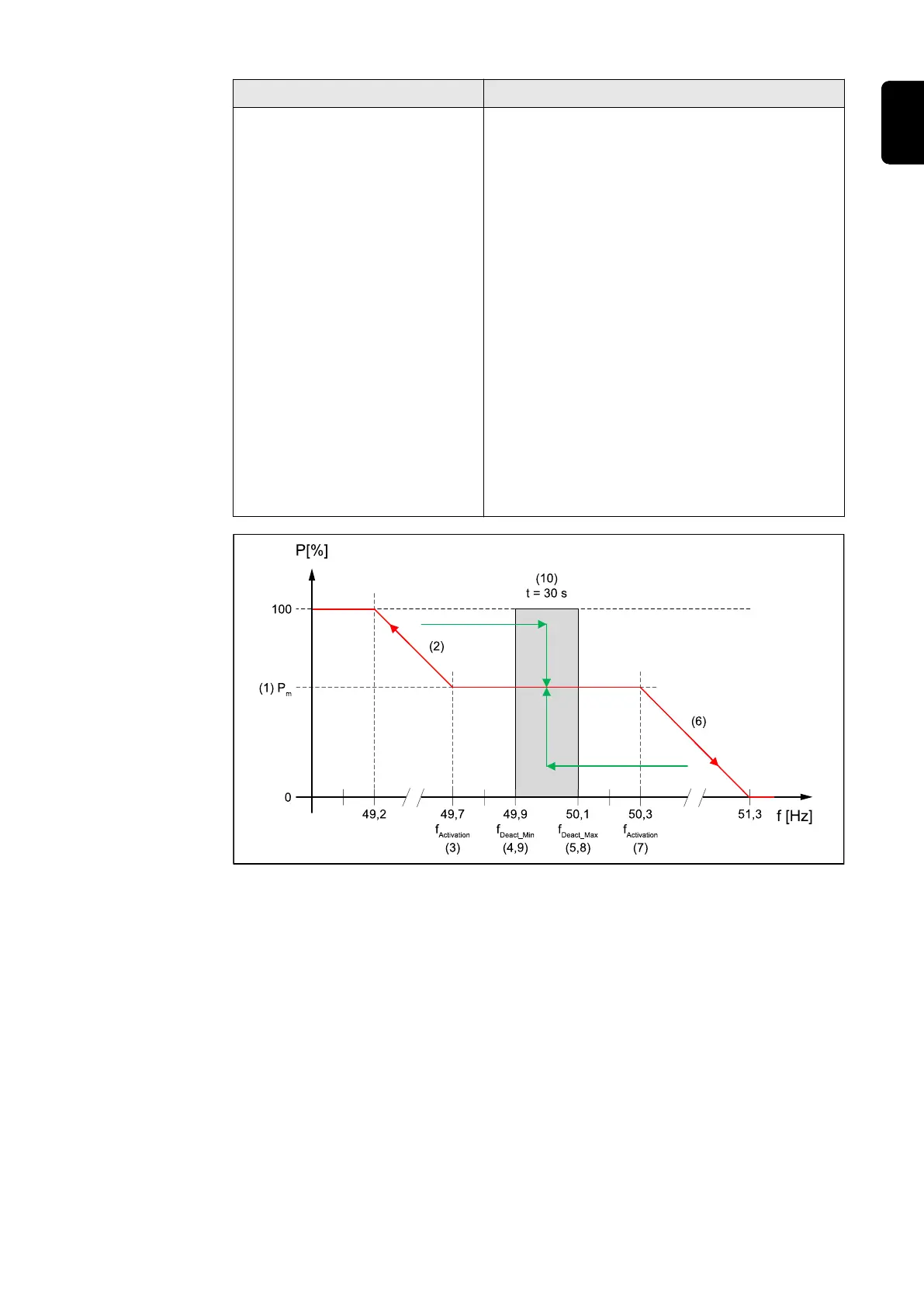 General power curve with overfrequency and underfrequency with hysteresis with gradients.