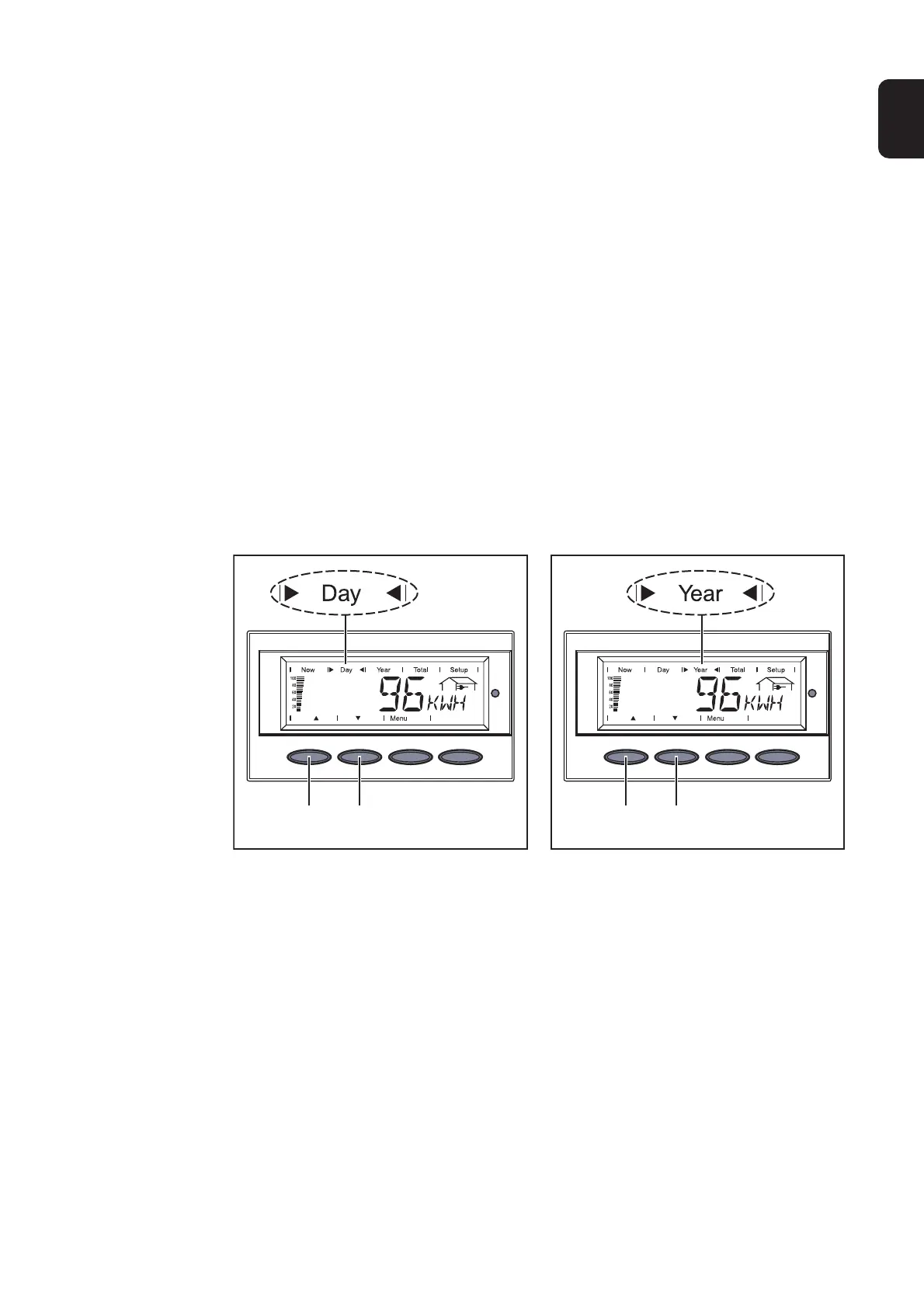 Fronius IG Plus 35 V-1 - Display Values in Day; Year; Total Display Modes