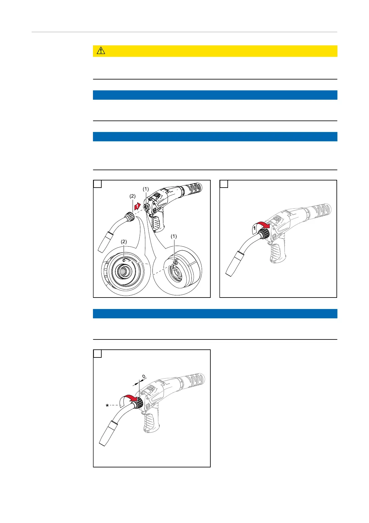 The torch body is in the 0° position when the dowel pin (1) on the hosepack en-