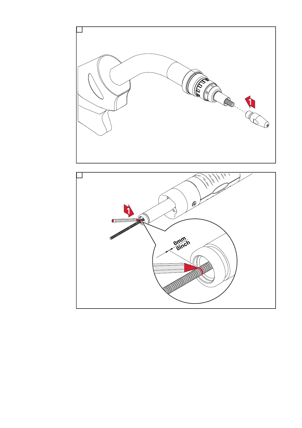Use the contact tip to push the inner liner completely into the welding torch; screw the contact tip tight
