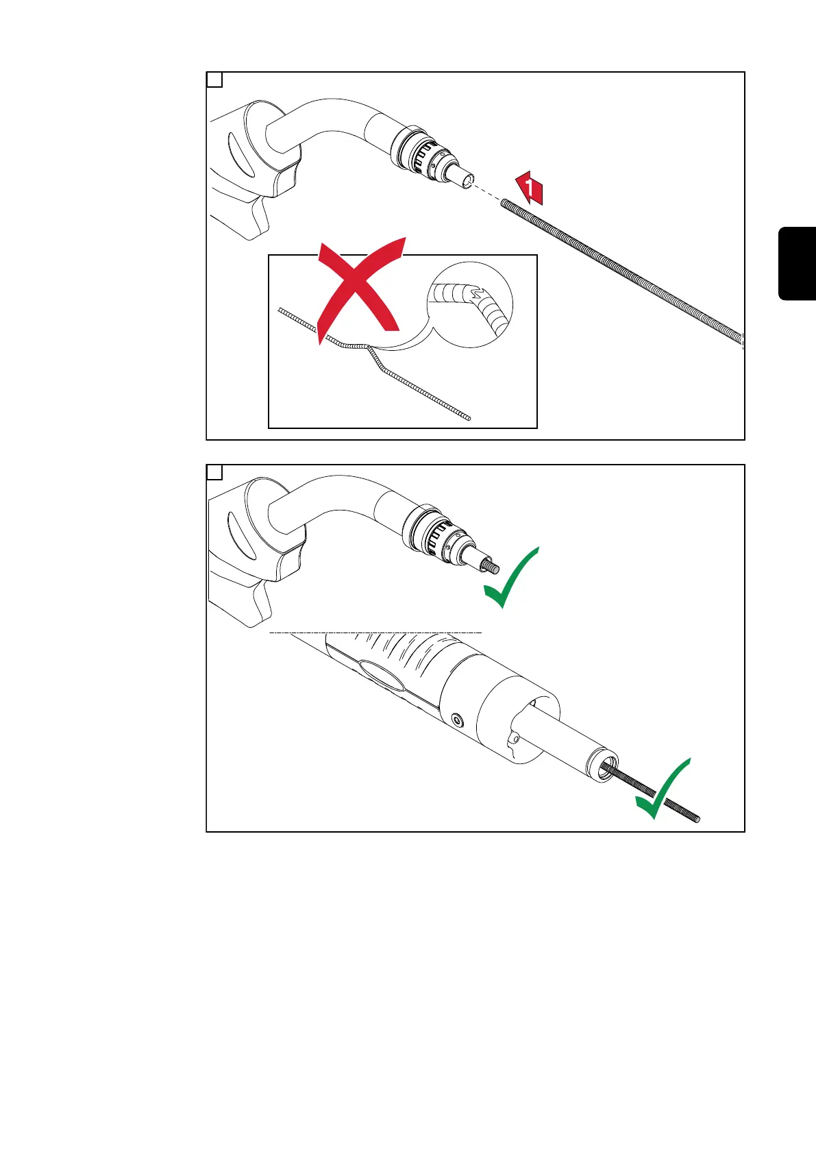 El forro interior debe sobresalir tanto del frente como de la parte posterior de la antorcha de soldadura