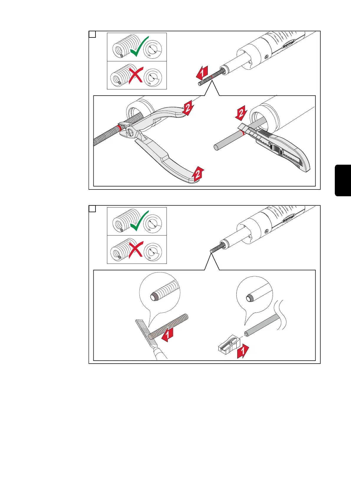 Tagliare la guaina guidafilo in corrispondenza del segno e assicurarsi che dalla guaina guidafilo non sporgano