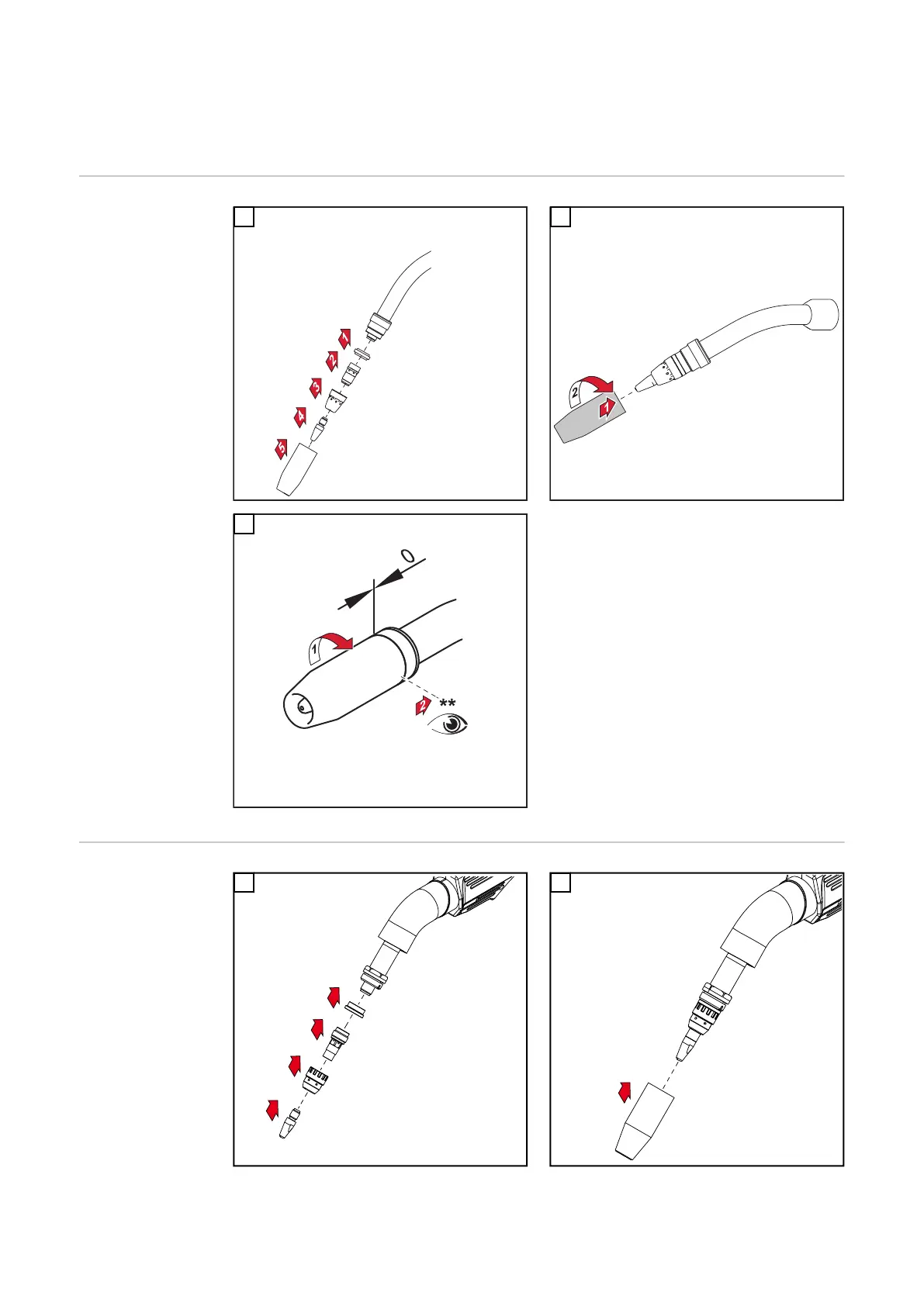 Fronius MTG 250d - Montar as Peças de Desgaste no Corpo da Tocha de Solda; MTG D, MTW D - Montar as Peças de Desgaste no Corpo da Tocha de Solda; MTG 400 D K4, MTW 500 D K4 - Montar as Peças de Desgaste