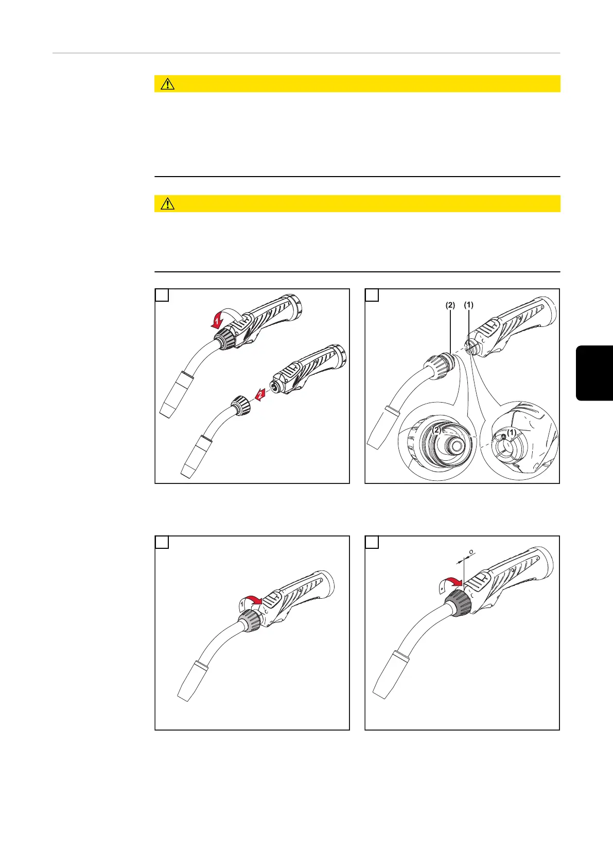 誤った溶接トーチの組み立てによるリスク。