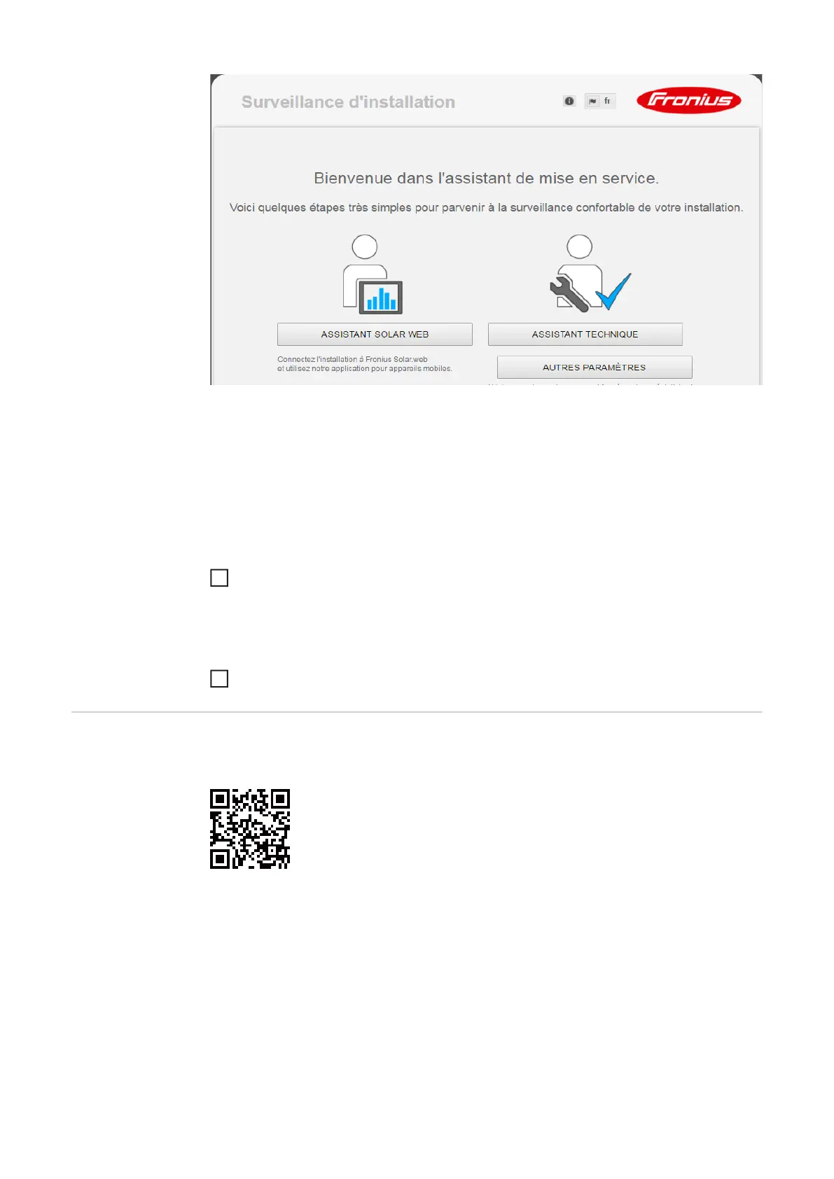 L'exécution de l'assistant Fronius Solar.web est obligatoire !