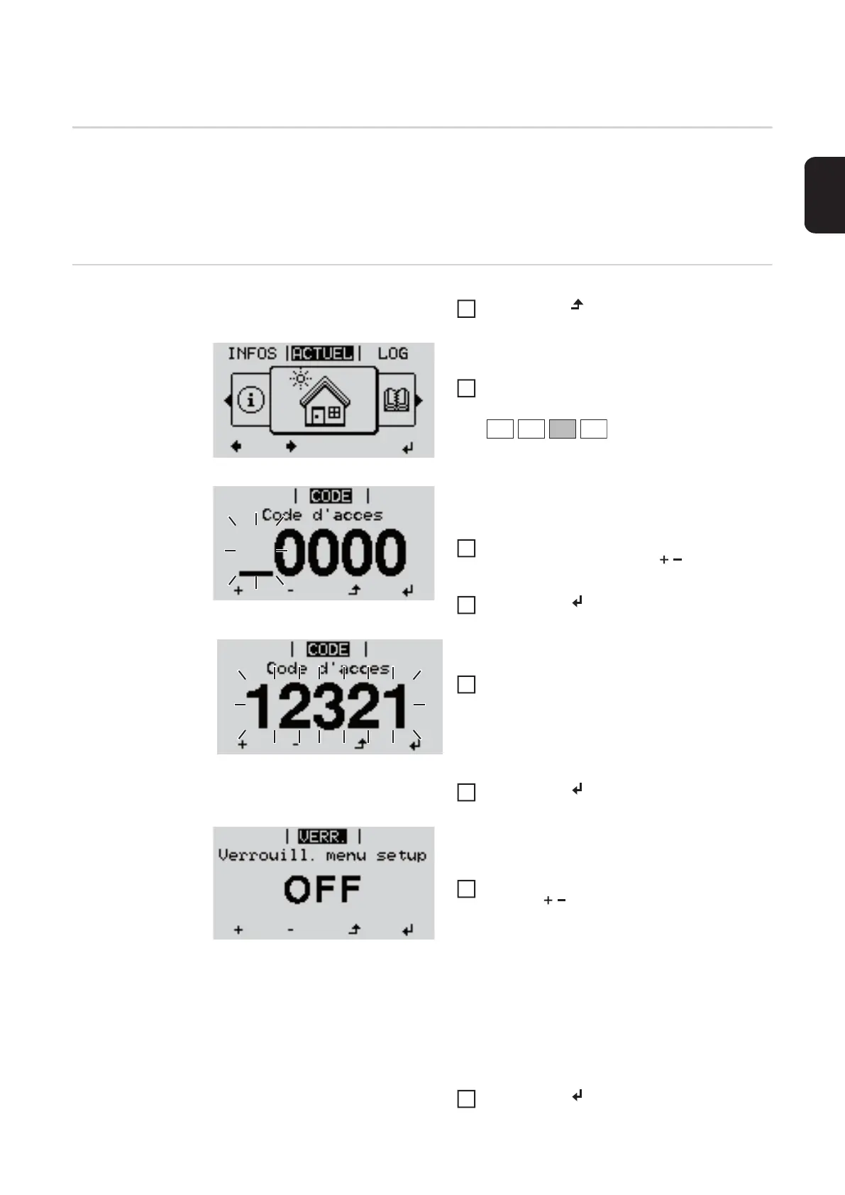 Généralités L'onduleur est équipé de la fonction Verrouillage des touches (Setup Lock).