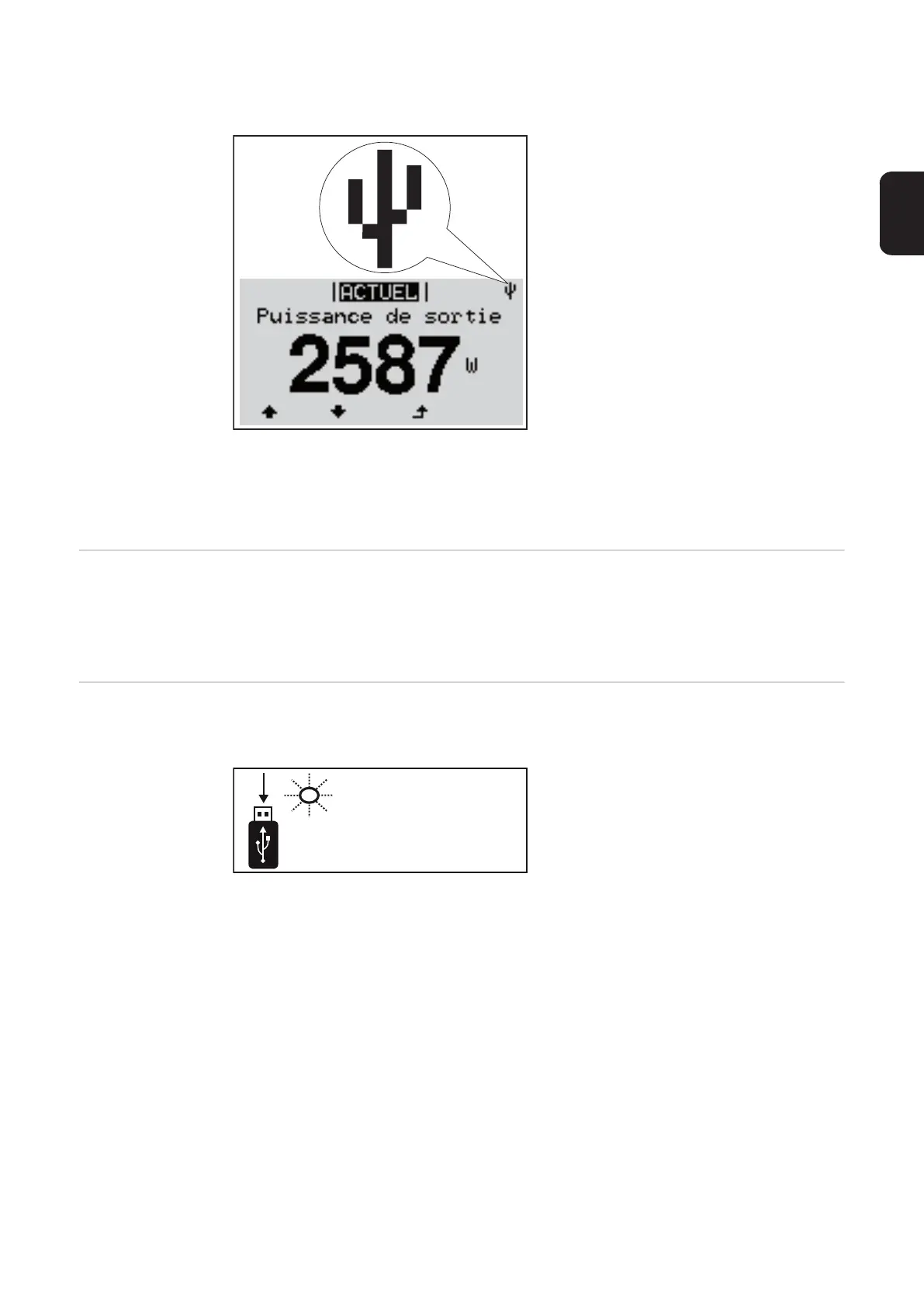 Symbole USB sur l'écran de l'onduleur, par ex. en mode d'affichage « ACTUEL » :