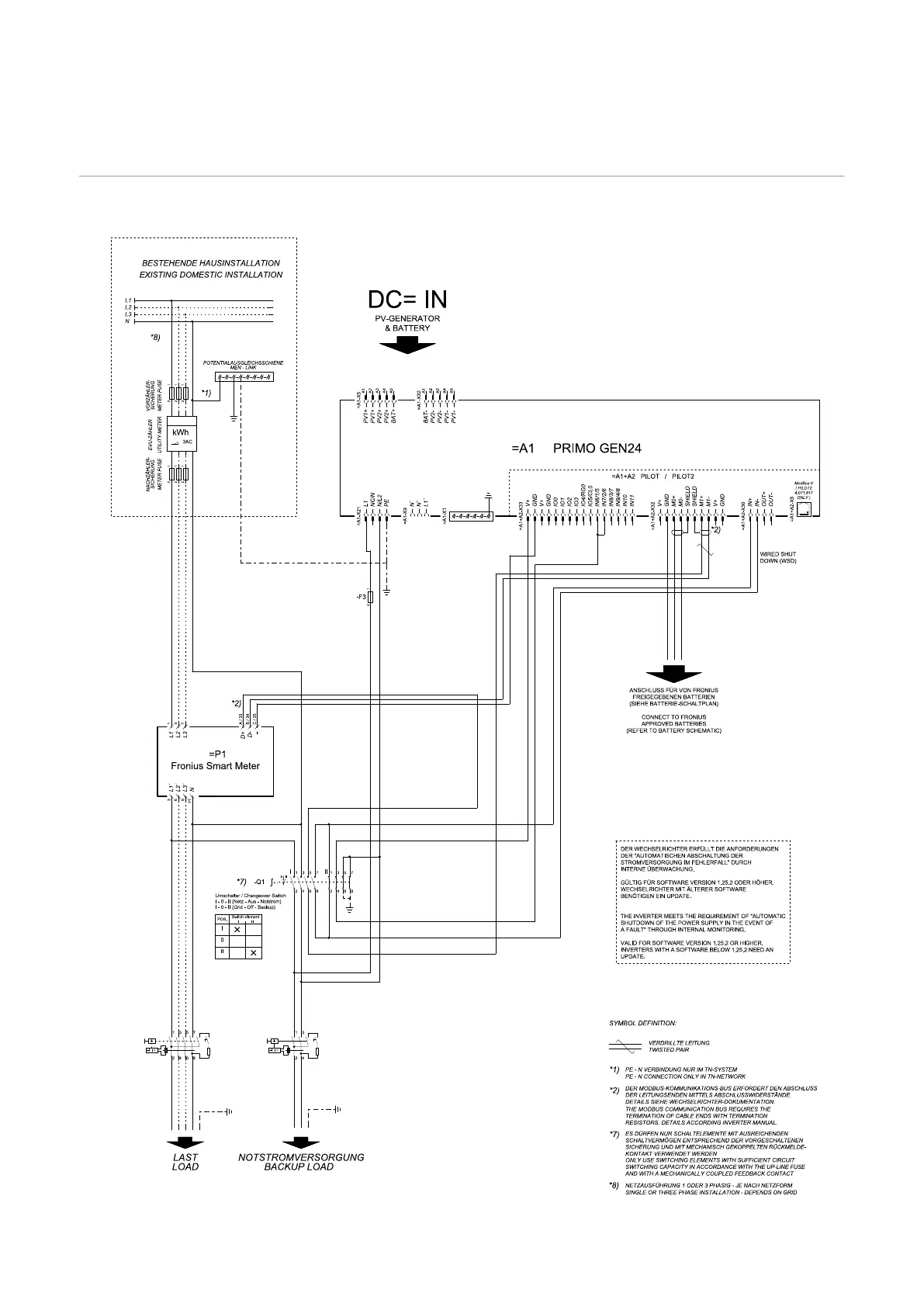 Fronius Primo GEN24 10.0 Plus - Manual Switch to Backup Power 2-Pin Separation, E.g. Germany; Circuit Diagram