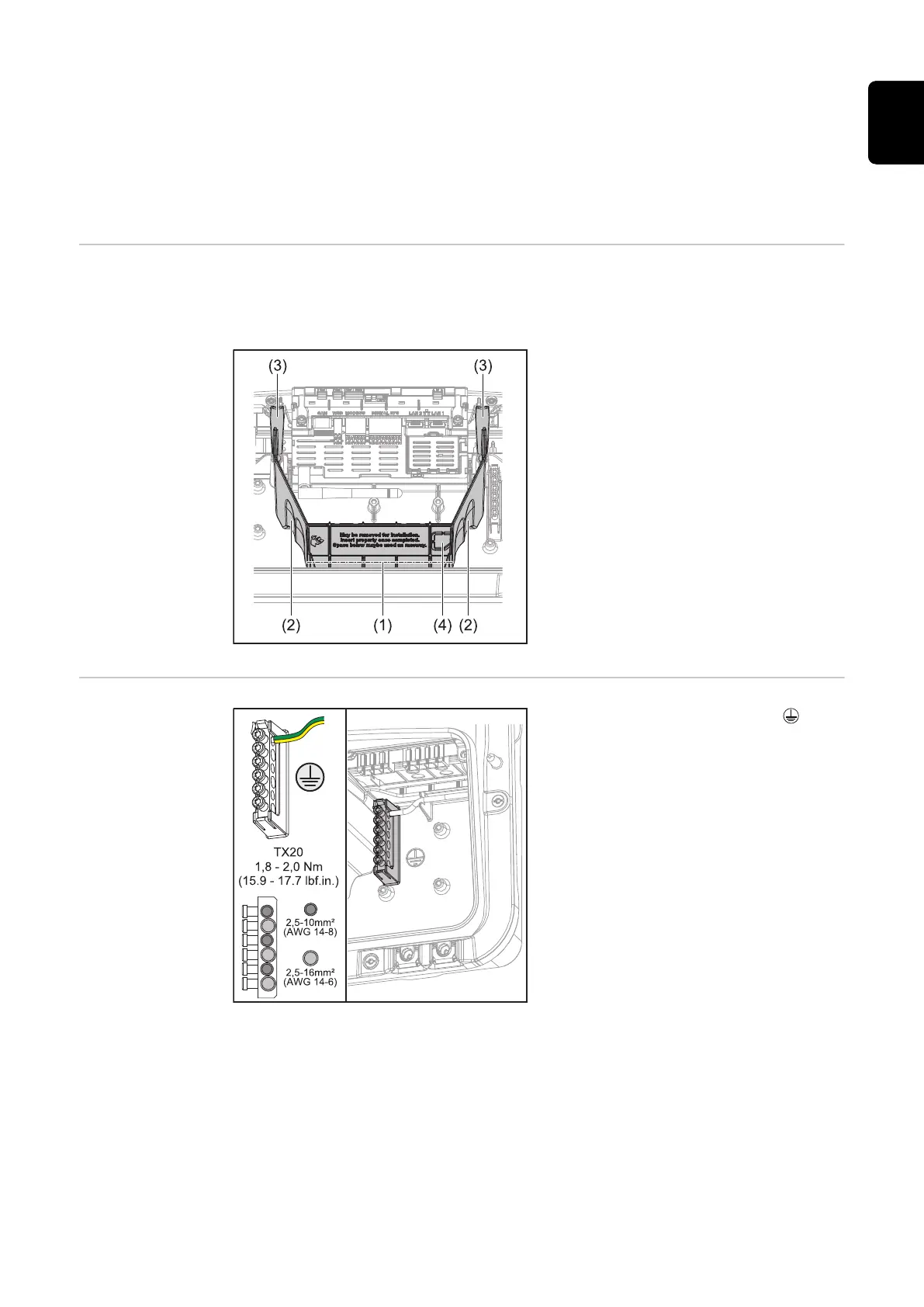 The connection area divider separates the high-voltage conductors (DC and AC)