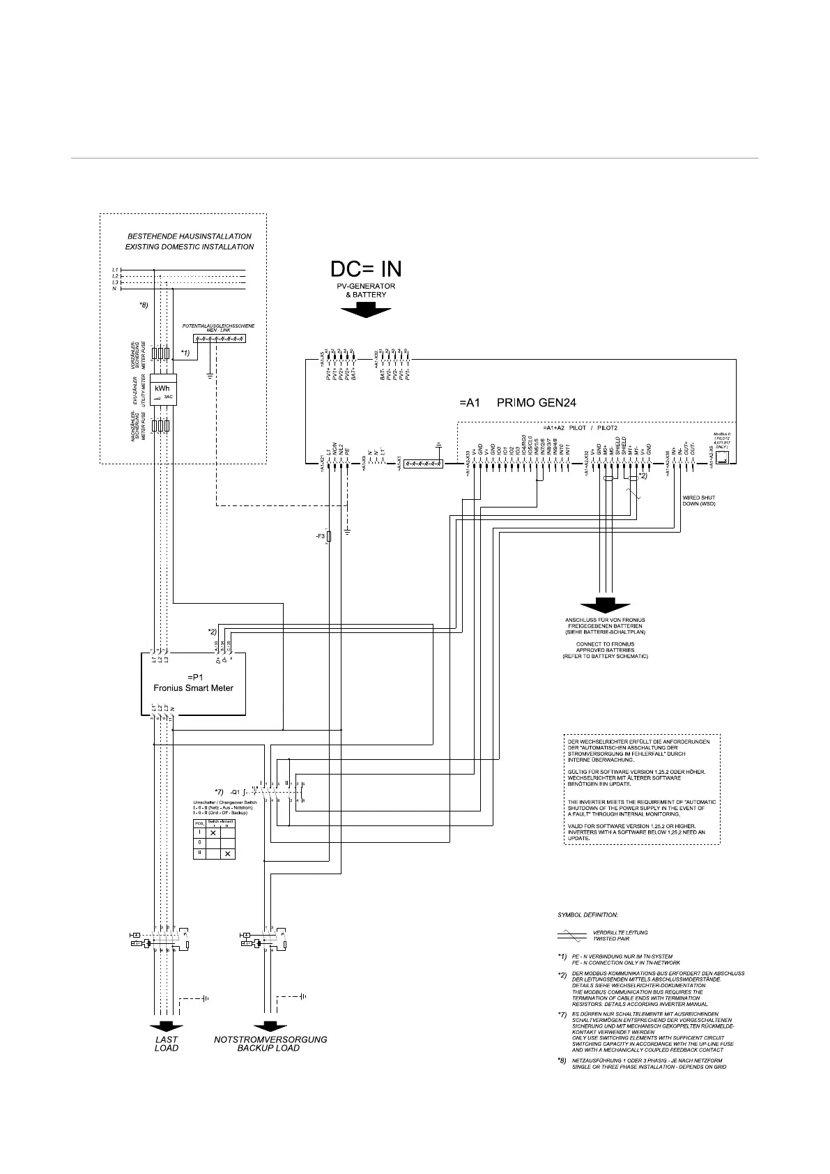 Fronius Primo GEN24 5.0 Plus - Manual Switch to Backup Power 1-Pin Separation, E.g. Australia; Circuit Diagram