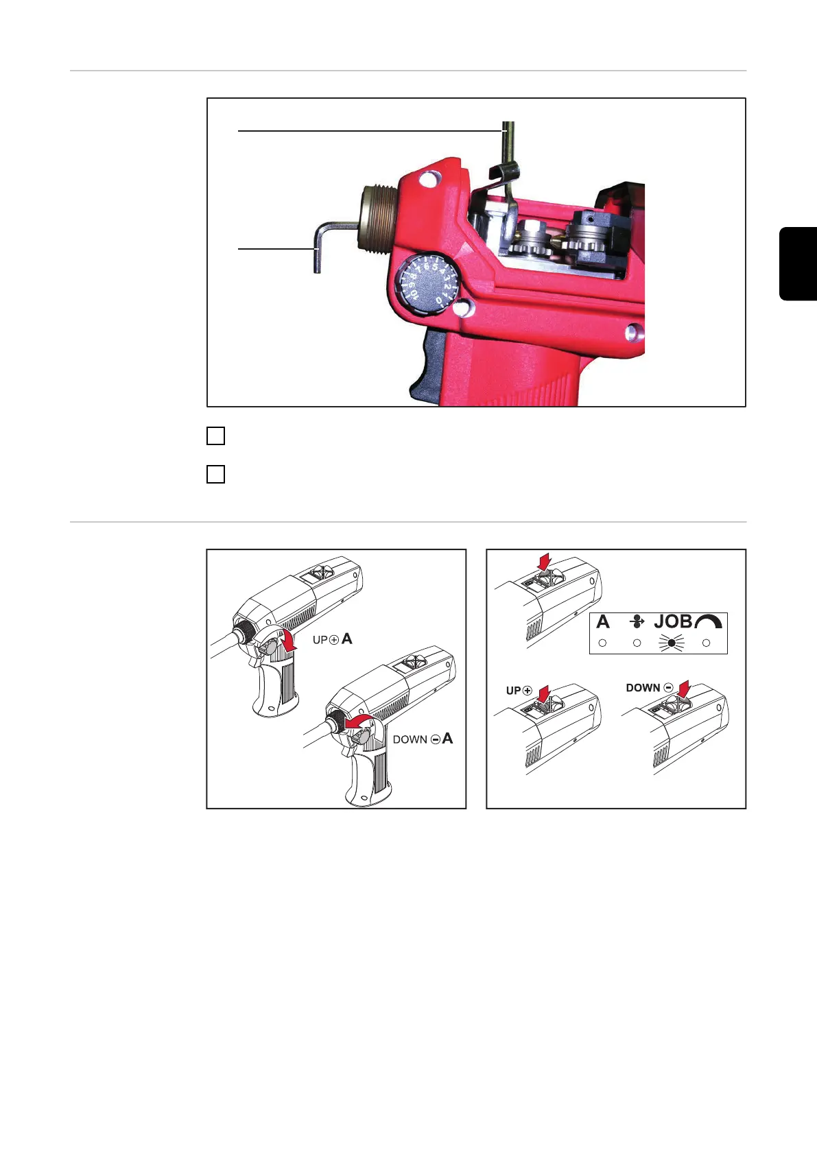 用内六角扳手 (2) 拧紧焊丝导入嘴