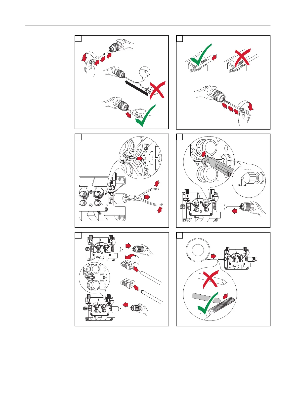 wirefeed rollers, but without touching them. Before threading in the welding wire,
