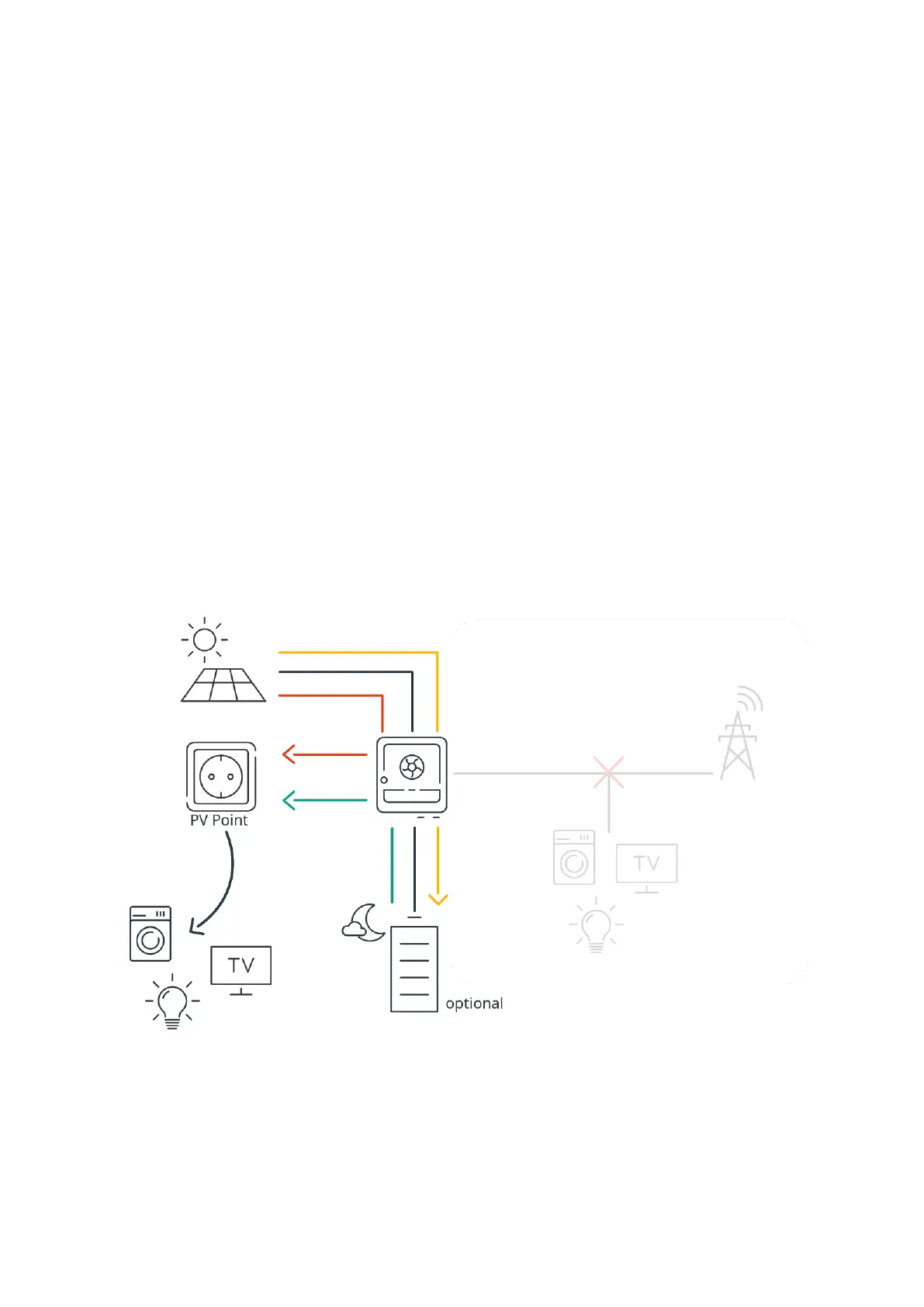 By installing the PV Point Comfort, the supplied socket or circuit can also be supplied permanently,