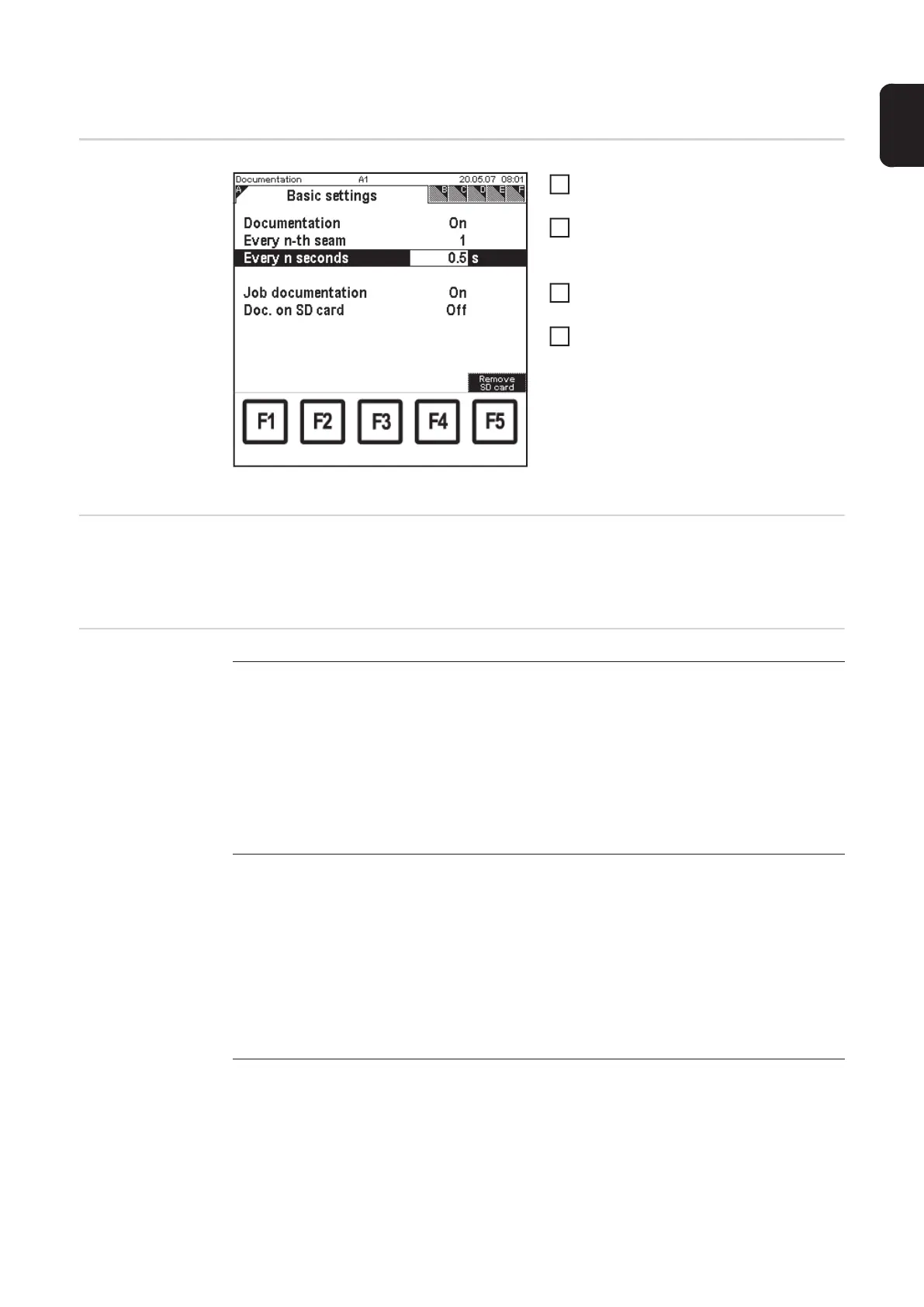 for setting the number of weld seams after which documentation is to occur Used for ran-