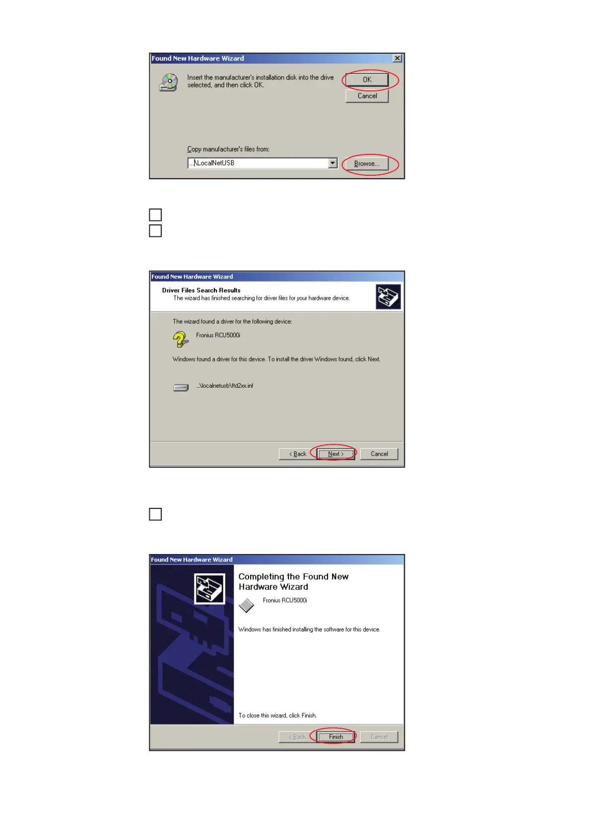"Found New Hardware Wizard - Driver Files Search Results" window appears