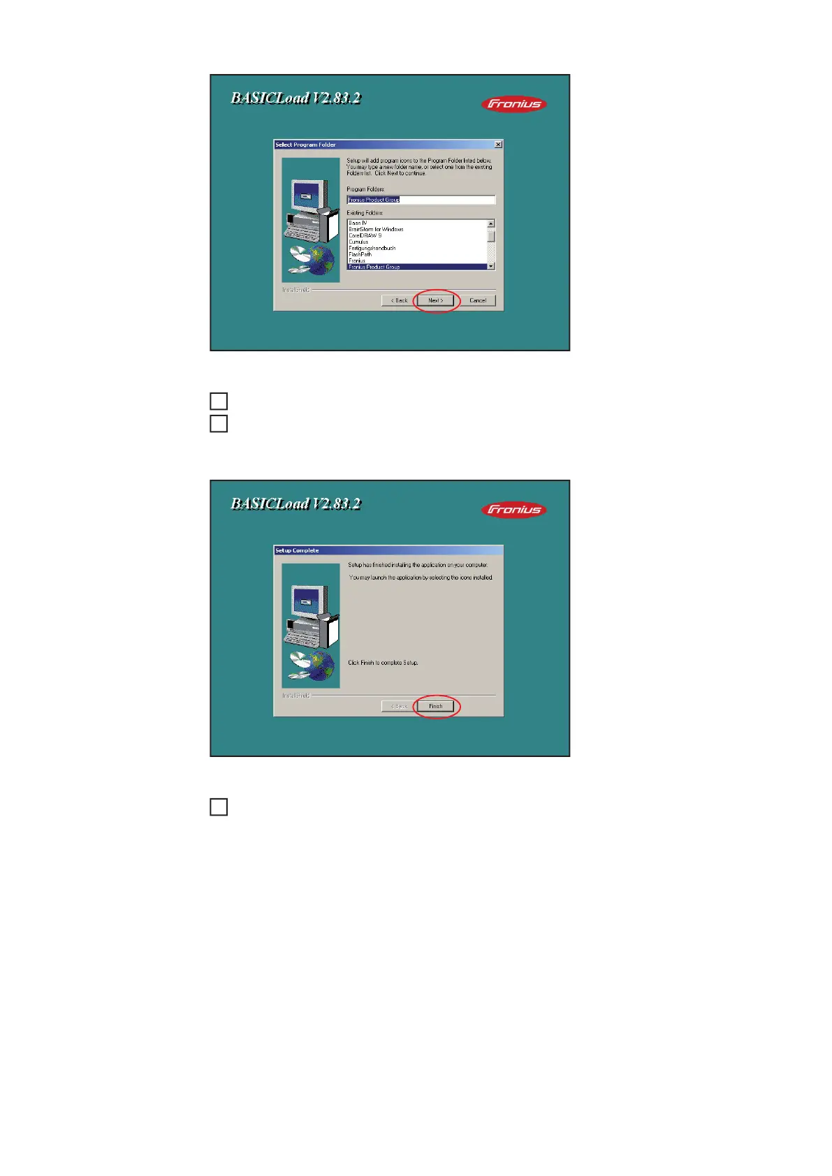 "BASICLoad-Setup V2.83.2 (c) FRONIUS ..." window appears