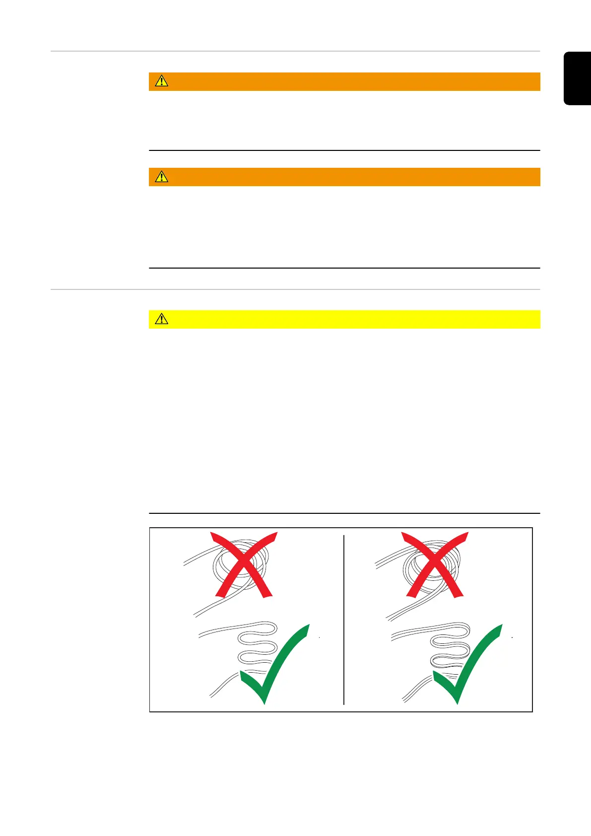 Charging cables longer than 5 m (16 ft. 4.85 in.) must be laid individually (no bund-