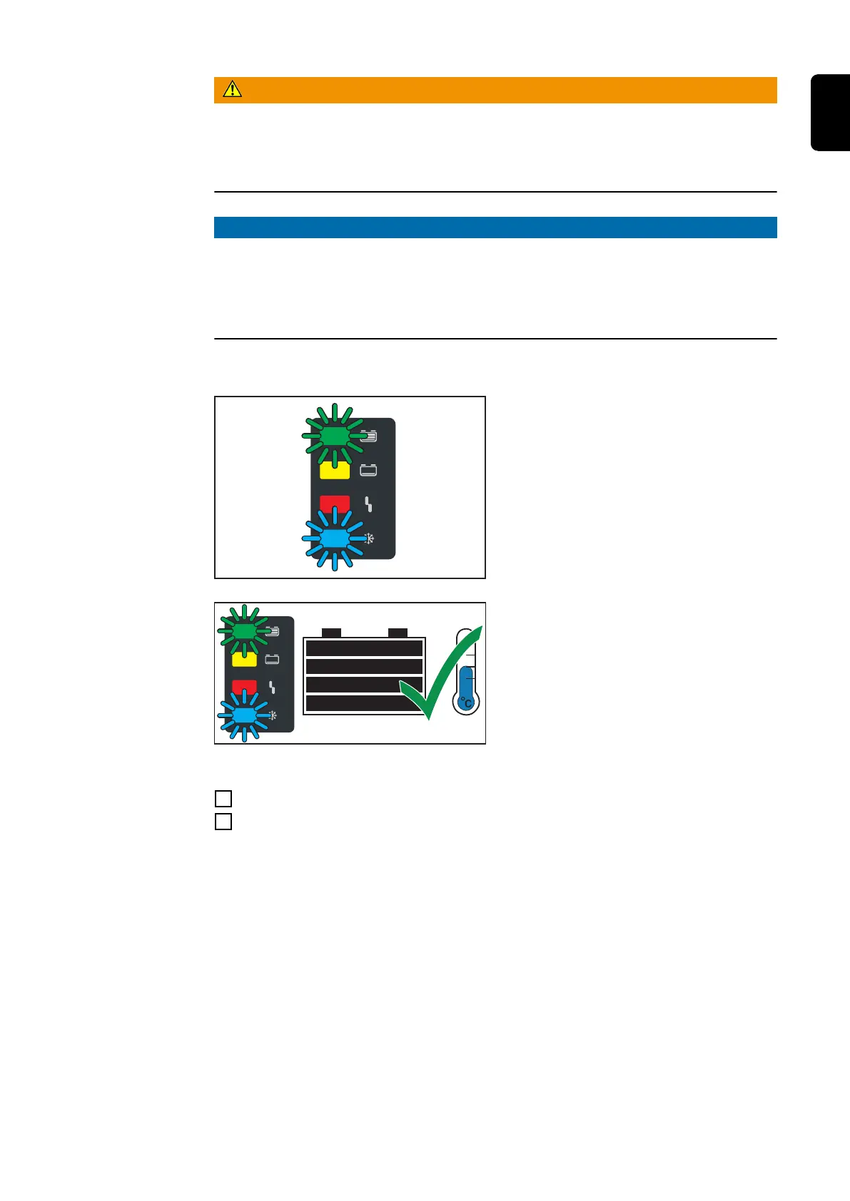the blue "Battery cold" indicator lights up in