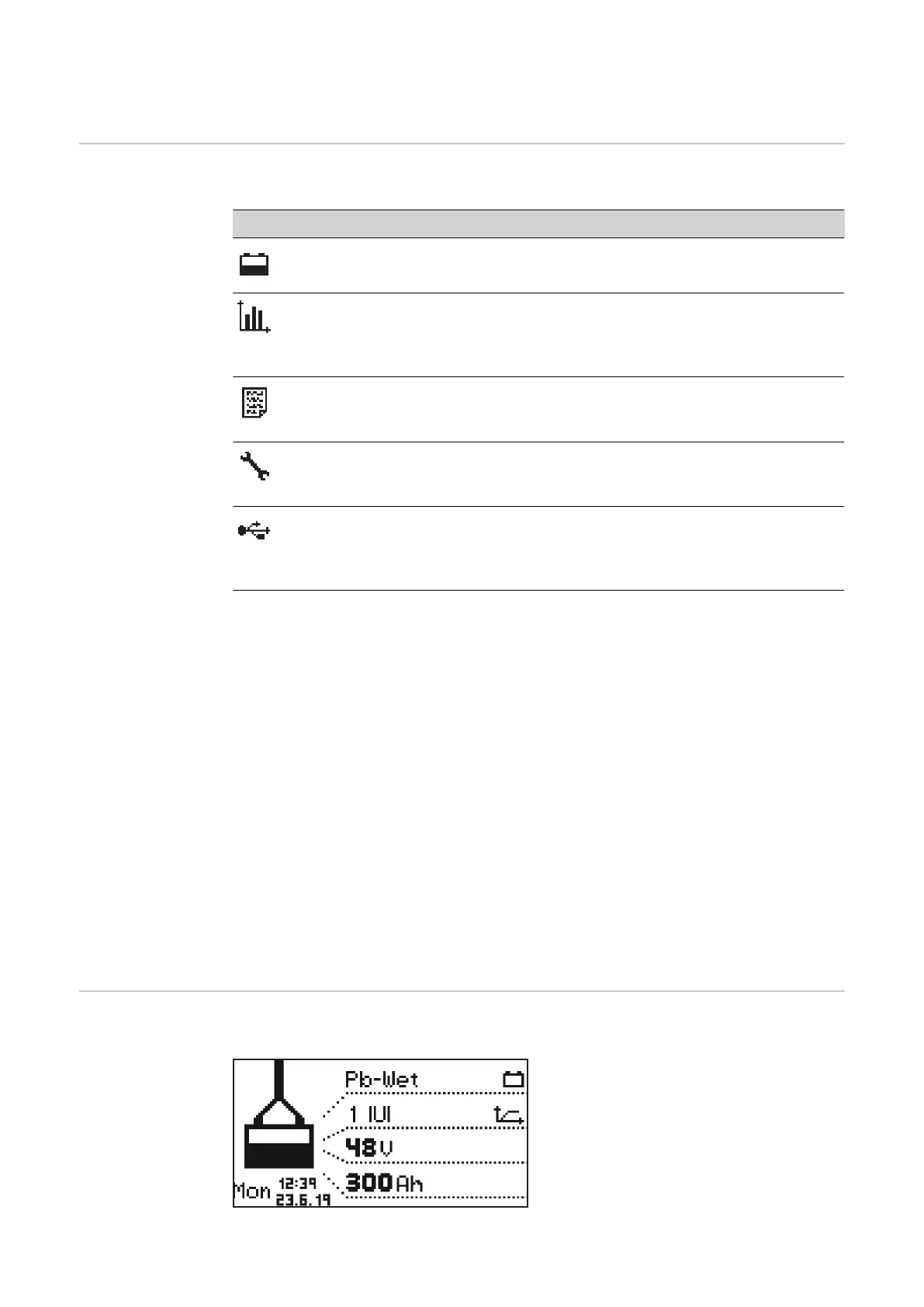 In standard mode, the display shows the charging parameters.