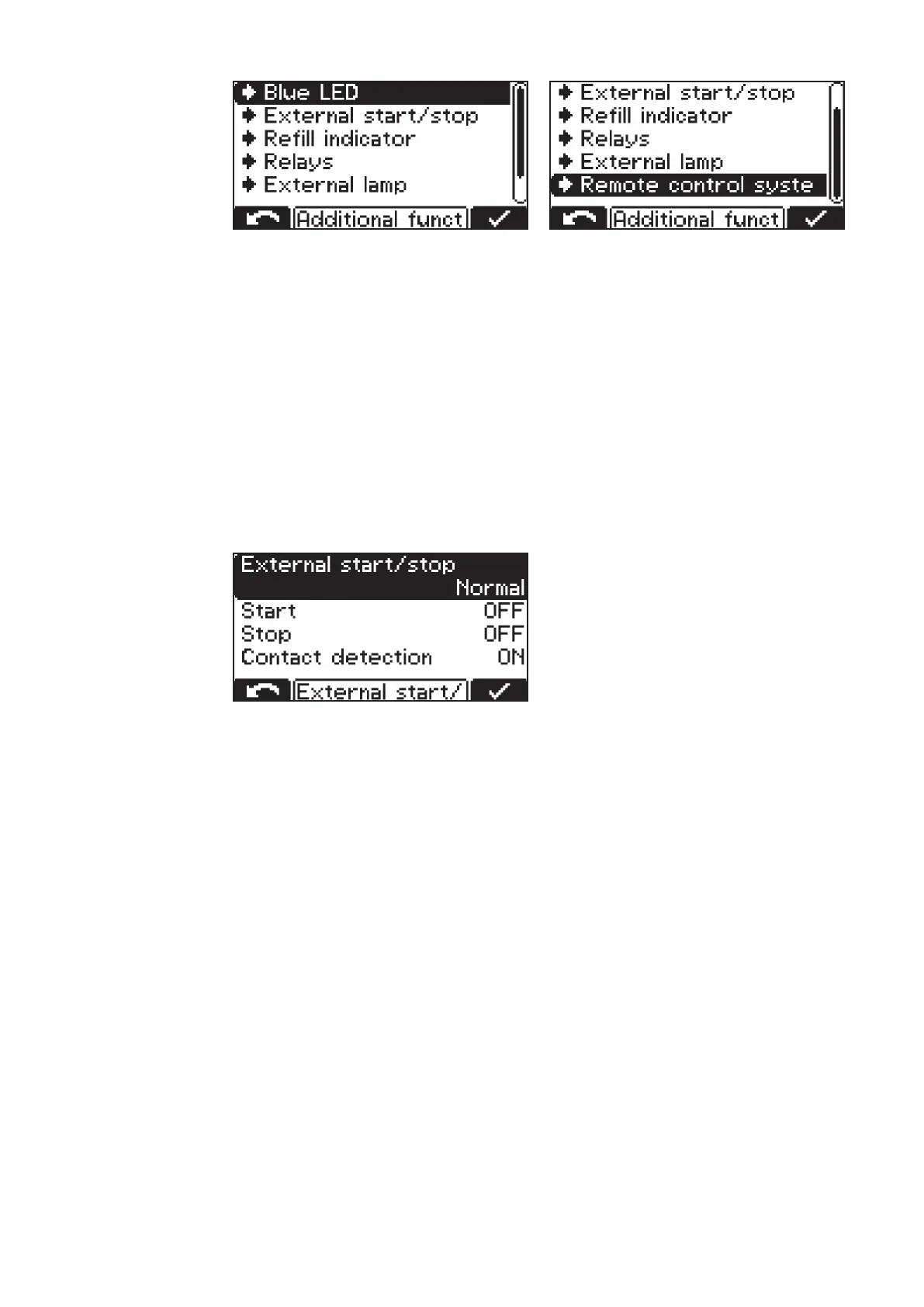 The following settings are available for external start/stop: