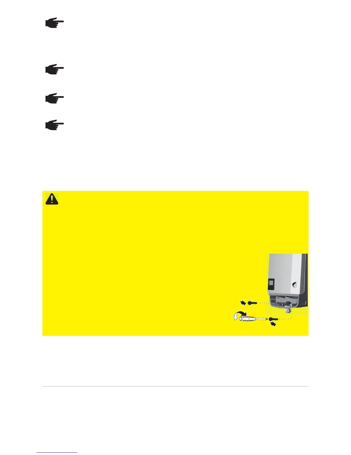OPMERKING! PV-installaties die aan licht blootgesteld worden, leveren stroom aan de inverter.