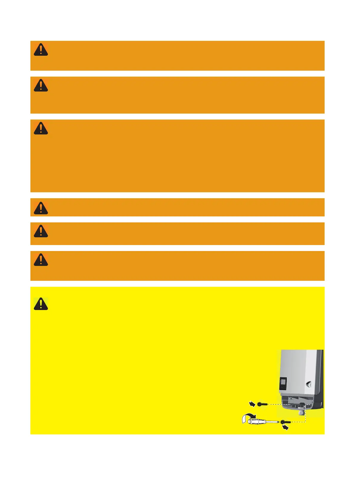 DİKKAT! İnverterlerde ve fotovoltaik tesisin akım taşıyan diğer iş parçalarında eksik veya yanlış kurulum