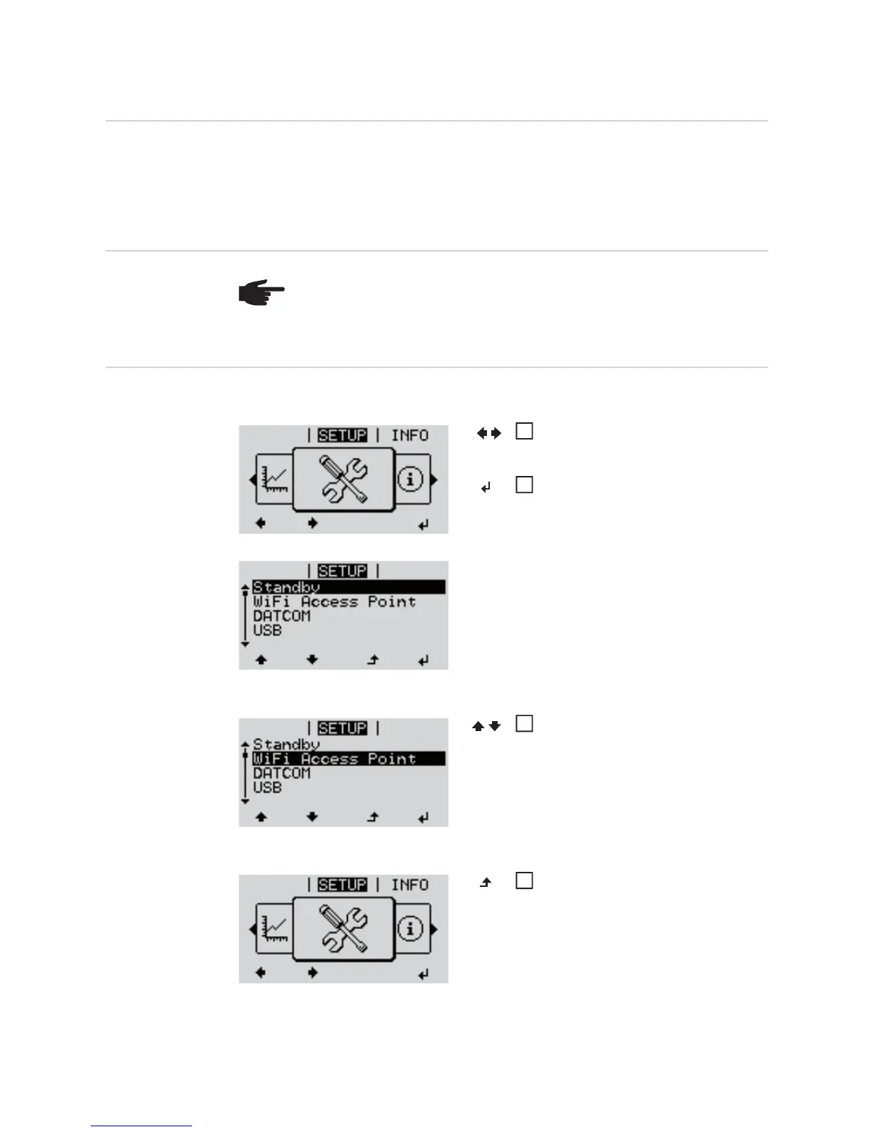 The SETUP menu item allows the initial settings of the inverter to be changed easily to