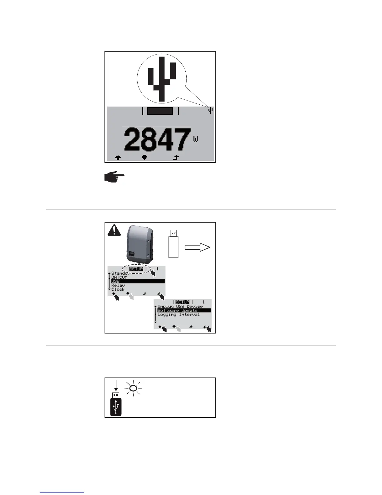 USB symbol on the inverter display, e.g. in display mode 'NOW':