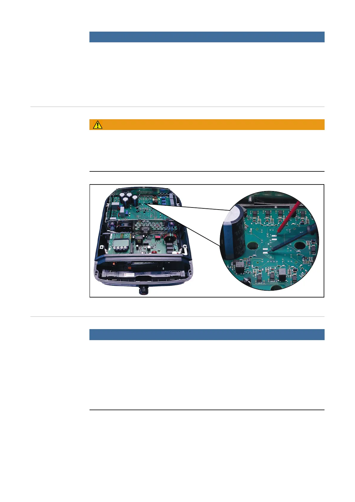 Um ein gefahrloses Arbeiten zu ermöglichen, die Entladezeit abwarten und danach die