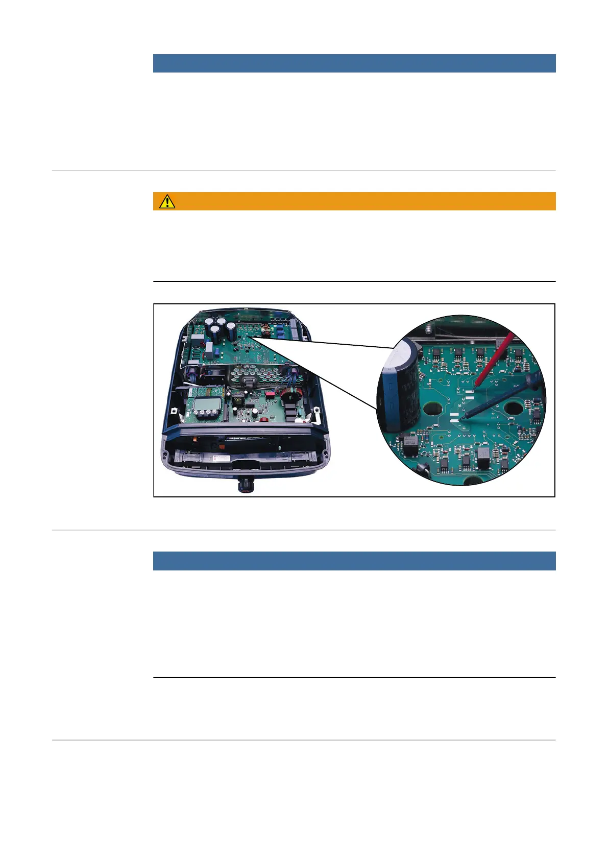 Danger of electric shock! Despite the presence of a discharge circuit, a dangerous