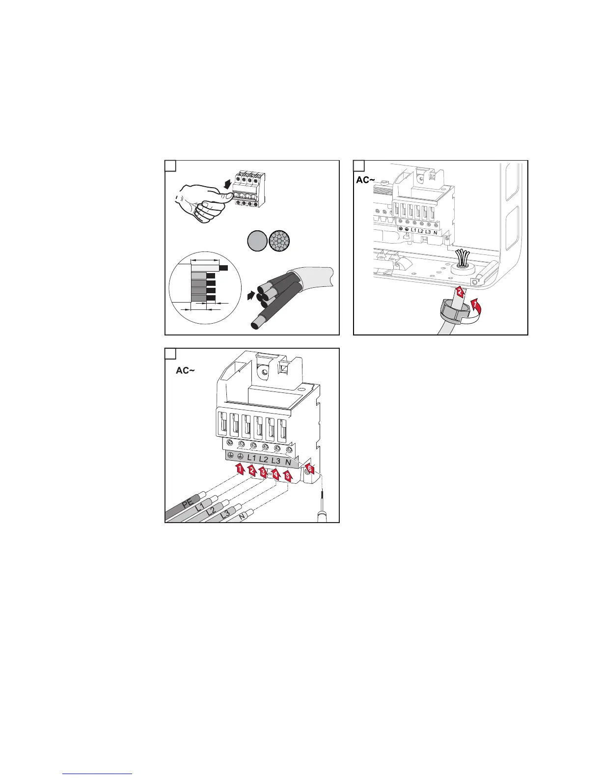IMPORTANT! The PE ground conductor of the AC cable must be laid in such a way that it