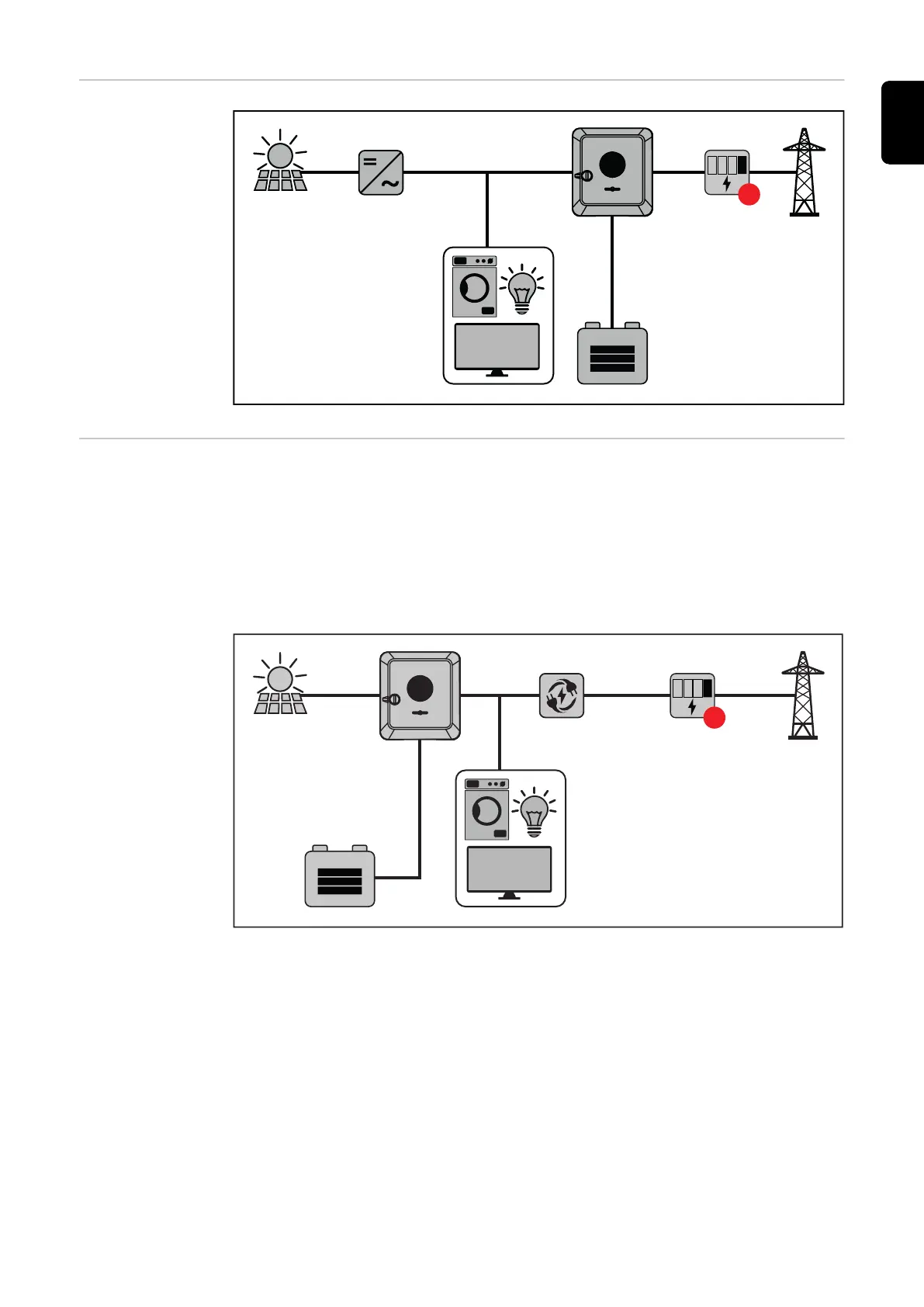 Store excess energy in the battery and/or feed it into the grid