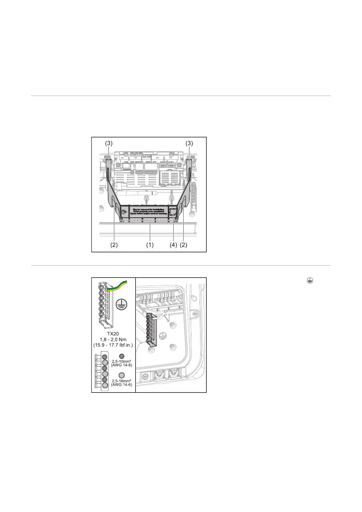 The connection area divider separates the high-voltage conductors (DC and AC)