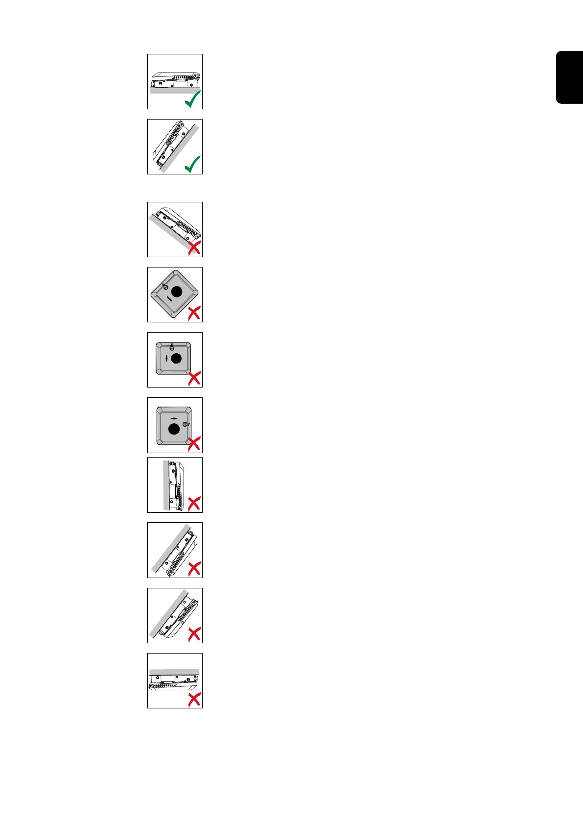 Do not install the inverter at an angle on a vertical wall or