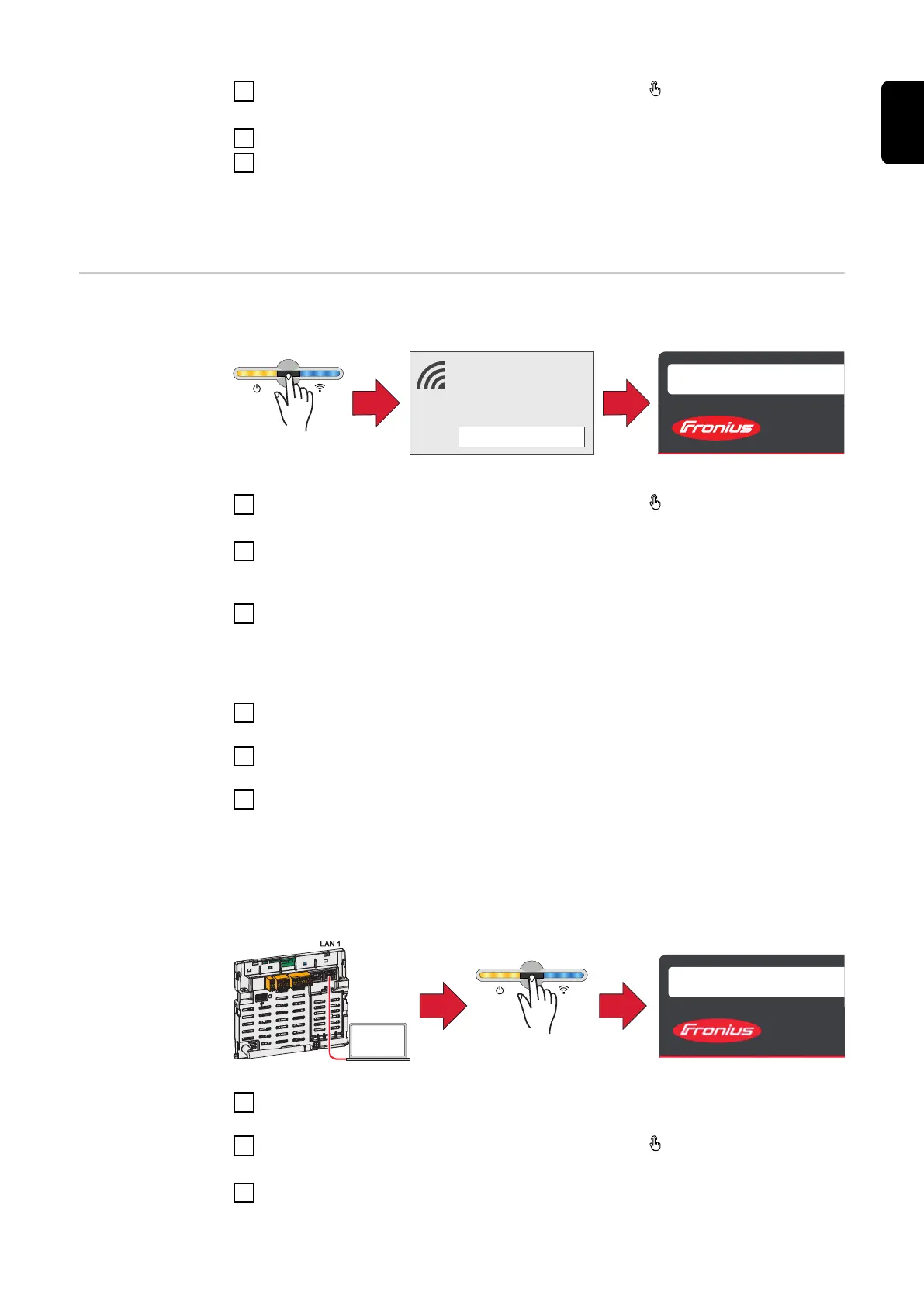 Establish a connection to the inverter (LAN1) with a network cable (CAT5